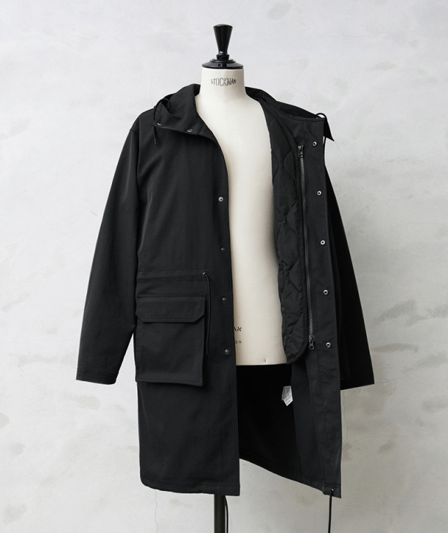 | 素材 | フーデッドコート ポリエステル:100% ダウンベスト 表地:ポリエステル100% 裏地:ポリエステル100% パイピング:綿100% 中綿:ダウン95%、フェザー5%(800FP) |