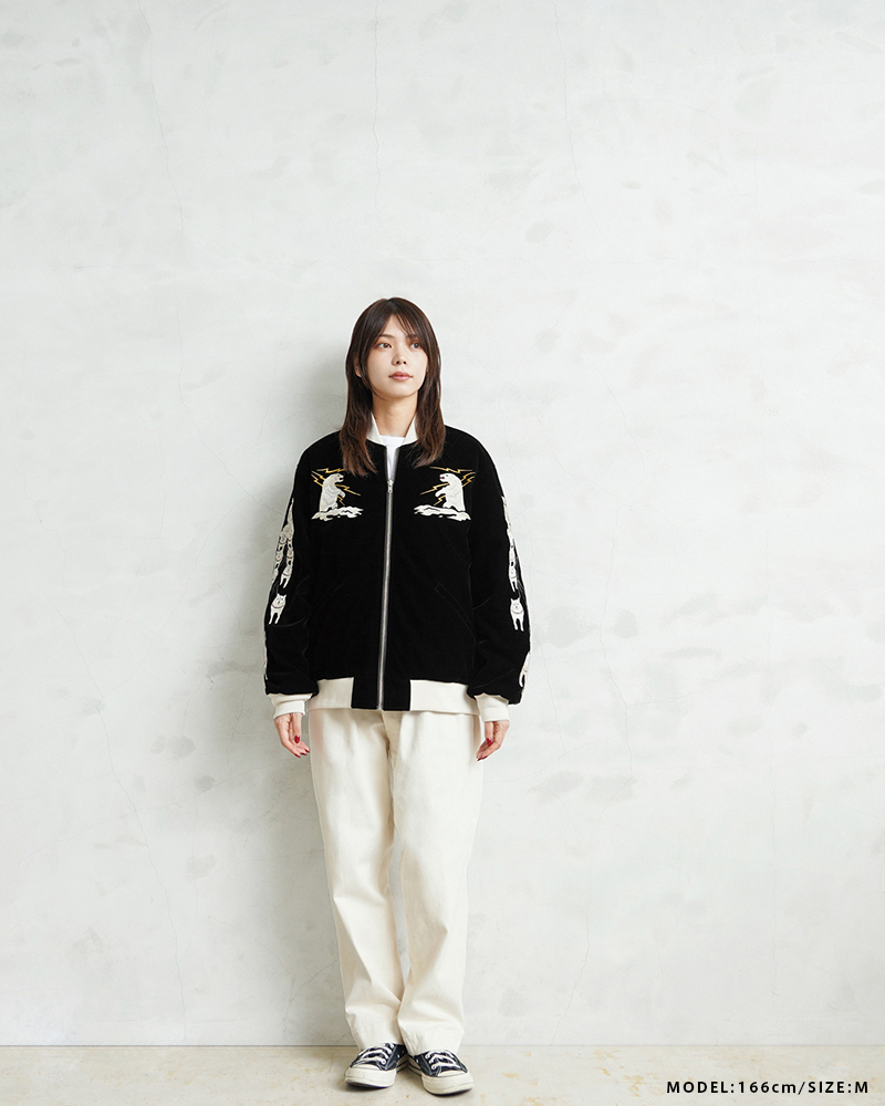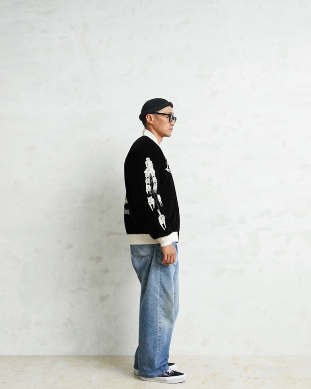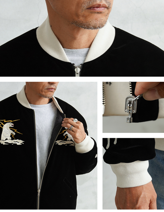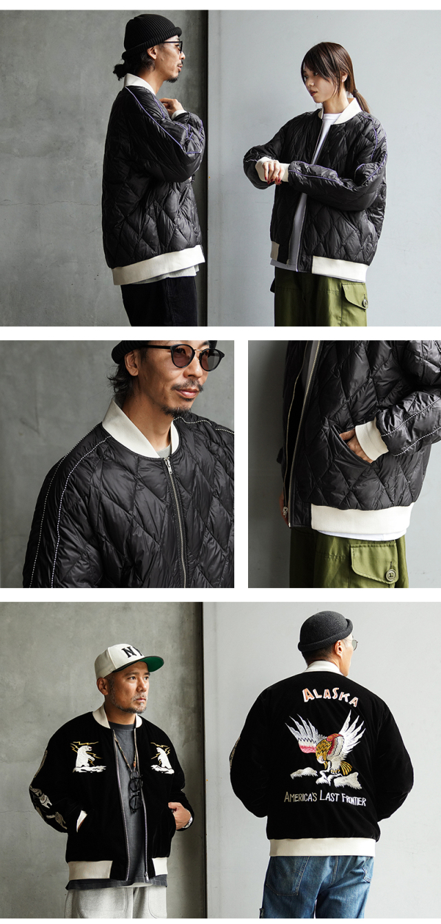 様々なデザイナーと創り上げる、TAIONの中ではデザイン性が高く、独自性のあるアイテムを展開する「JAPAN SPECIAL」ライン。 雰囲気のあるベロア素材にスカジャン刺繍を、裏側はダイヤキルトダウンジャケットで、気分やコーデに合わせて楽しめるリバーシブル仕様に仕上げられたアイテム。中綿にはブランドが誇る軽くて暖かい800FPの上質なダウンを使用しています。