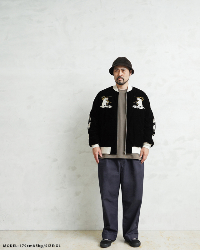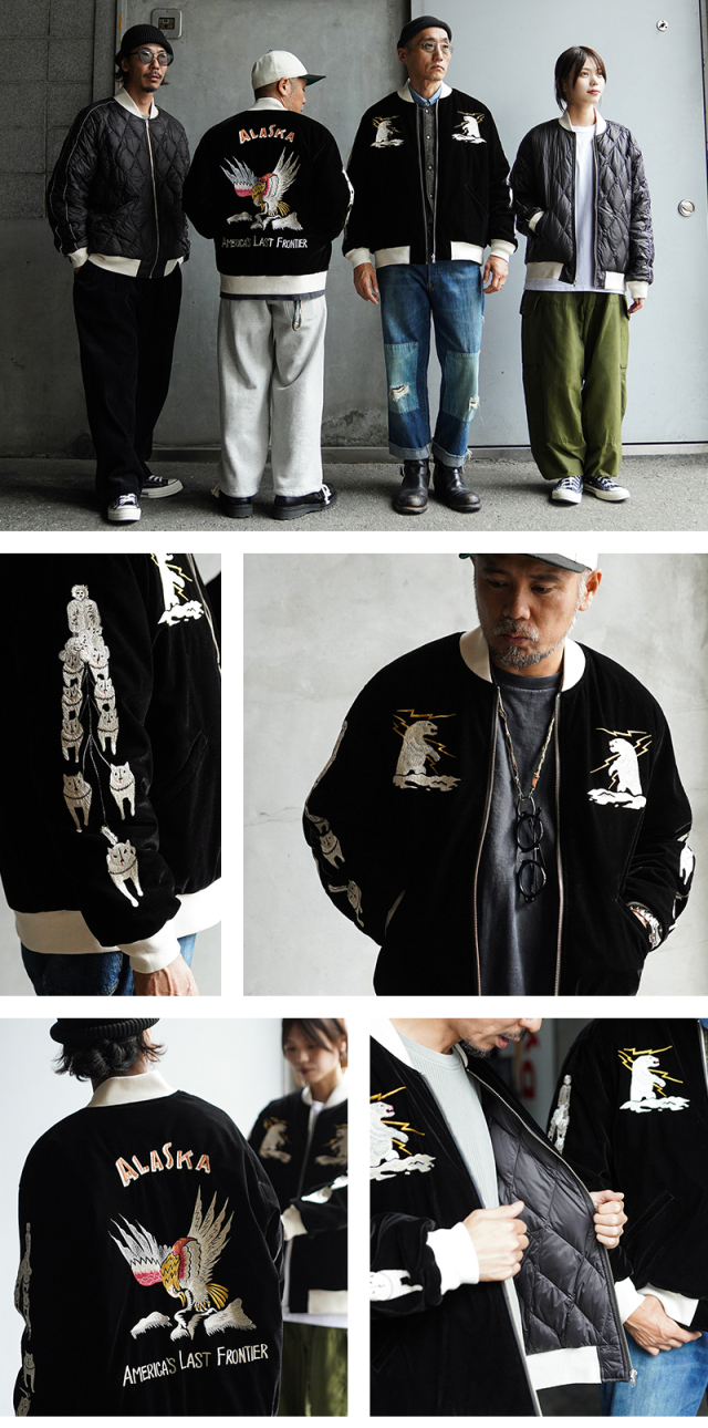 | 商品説明 | TAION JAPAN SPECIAL WAIPER別注 リバーシブル スカジャン ダウンジャケット “ALASKA”のご紹介です。 品番:TAION-JK04WPJS-AL 様々なデザイナーと創り上げる、TAIONの中ではデザイン性が高く、独自性のあるアイテムを展開する「JAPAN SPECIAL」ライン。 ブランドインラインでも展開している渾身作、スカジャン リバーシブルダウンジャケットをベースに、スペシャルな別注アイテムを制作いたしました。 雰囲気のあるベロア素材にスカジャン刺繍を、裏側はダイヤキルトダウンジャケットで、気分やコーデに合わせて楽しめるリバーシブル仕様に仕上げられたアイテム。中綿にはブランドが誇る軽くて暖かい800FPの上質なダウンを使用しています。 展示会で実際に拝見したときに感じた、いい意味でダウンウェアブランドらしからぬ刺繍のクオリティの高さ。ブランド担当の方もビンテージスカジャンを所有しており、刺繍に関しては何度もやりなおし、かなりこだわって制作されているそうです。非常に魅力的で、「これで別注をやりたい」という思いに駆られてしまいました。 別注モデルには数あるスカジャンデザインのなかでも抜群の人気を誇る「ALASKA」デザインの刺繍を施しています。フロントにはサンダーベア、両袖に犬ぞり、バックには“ALASKA”の文字と迫力のイーグル刺繍。実際にスーパーレアなビンテージアーカイブを用いて、こちらを再現いたしました。 ビンテージアーカイブを丁寧に撮影、分析し刺繍をデータ化。細部の形状や大きさ、文字の角度など、とことんこだわりました。刺繍の糸色に関しては、おそらく1000種類は掲載されている糸帳のなかから1色ずつブランド担当の方と丁寧に照らし合わせながら選定。大事にしたかったのは刺繍の「ビンテージ感」の再現です。年数の経っているスカジャンの糸は白糸が日焼けなどで微妙に黄ばんでいたりします。この雰囲気を出すため、白色の選定は特に苦労致しましたが、最初からわざとらしさのない経年変化感を楽しめる仕上がりとなりました。 袖や裾リブの色合いに関しても、この刺繍とマッチするよう選定。通常のインラインはビスロンのダブルジッパー仕様ですが、今回の別注アイテムは刺繍の雰囲気に合うよう、あえてくすんだシルバーカラーのシングルジッパーを採用しています。大事にしたかったのは前述いたしましたとおりアーカイブの「ビンテージ感」です。 インラインのアイテムと同じく、表側片玉淵ポケット、裏側キルティング面にも両玉淵ポケットを配した、2通りの着用が可能なリバーシブルデザイン。裏側キルティング面のデザインにもご注目頂きたいのですが、こちらは別珍ではなくキルティングにはなりますが、ご好評いただいております当店オリジナルのスーベニアジャケットデザインを落とし込んでおります。裏面は刺繍のないシンプルなスカジャンデザインで、表面とはまた違ったイメージで楽しめる仕様となっています。 貴重なビンテージアーカイブを踏襲したこだわりの刺繍。 軽くて暖かい着心地も抜群な高品質のダウン。 本当にいい一着が完成しました。 |