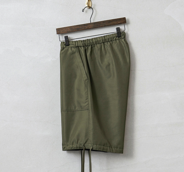 | 商品説明 | TAION タイオン MILITARY LINE ノンダウン リバーシブルショートパンツ のご紹介です。 品番:TAION-R031SWNDML-1 様々なインナーダウン商品を展開しているTAIONから、"ダウンを入れない” アイテムを展開する"NON DOWN” シリーズが登場。 こちらのMILITARY LINEは、引き裂き強度の強い5mm角のリップストップ生地を採用。軽量かつ防汚性も兼ね備えているので、デイリーユースだけでなくアウトドアシーンでの着用にもオススメです。 腰回りはゴムとドローコードでフィット感の調整が可能。裾のドローコードは垂らしたり結んでデザインのアクセントにもなり、絞ることで裾幅の調整も可能です。最大の特徴でもあるリバーシブルデザインは両面にゆったりとしたポケットがついているので利便性もよく、その日の気分やコーディネートに合わせて着る楽しみもあります。また非常に軽くコンパクトに畳むこともできるので、持ち運びに便利です。 ベーシックなデザインに遊び心のあるギミック、機能性の高くミリタリーテイストな生地感は、カジュアルなデイリーウェアからアウトドアや旅行など幅広いシーンで活躍します。 |