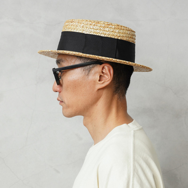 品番:UK-H048 麦わら帽子を手がけて140年以上、老舗の風格と確かな技術を持つ田中帽子店より、個性的な「鬼麦」のカンカン帽が登場しました。 鬼の歯のように粗くギザギザしていることから名づけられた「鬼麦」は、麦わらを素材とし、通常の麦わら真田とは異なる編み方で作られた貴重な材料。 真田自体が歯のようにギザギザとして粗く、一般的な平らな麦わら真田と違って凹凸のあるざっくりとした質感が特徴です。 ツバは、表裏が同じ見栄えになるよう2重縫いになっており、しっかりとした硬さで型崩れもしにくい造り。カンカン帽らしい風合いを維持し、熟練の技を持つ日本の職人だからこそできる非常に高度な技術を要しています。 汗止め内側にサイズ調節テープがあり、フィット感の調整も可能になっています。 天然素材ならではの素材感と涼しさを持つ“麦わら”は、通気性に優れ、日除けに最適。独特な風合いや艶感は使い込むほどに愛着が沸いてきます。 通常の麦わら帽子ではなく、ブリムやツバが平らになったカンカン帽は、ヴィンテージファッションやレトロスタイルとも相性抜群。大人のコーディネートに取り入れたい男女ともにお勧めのアイテムです。 MADE IN JAPAN |