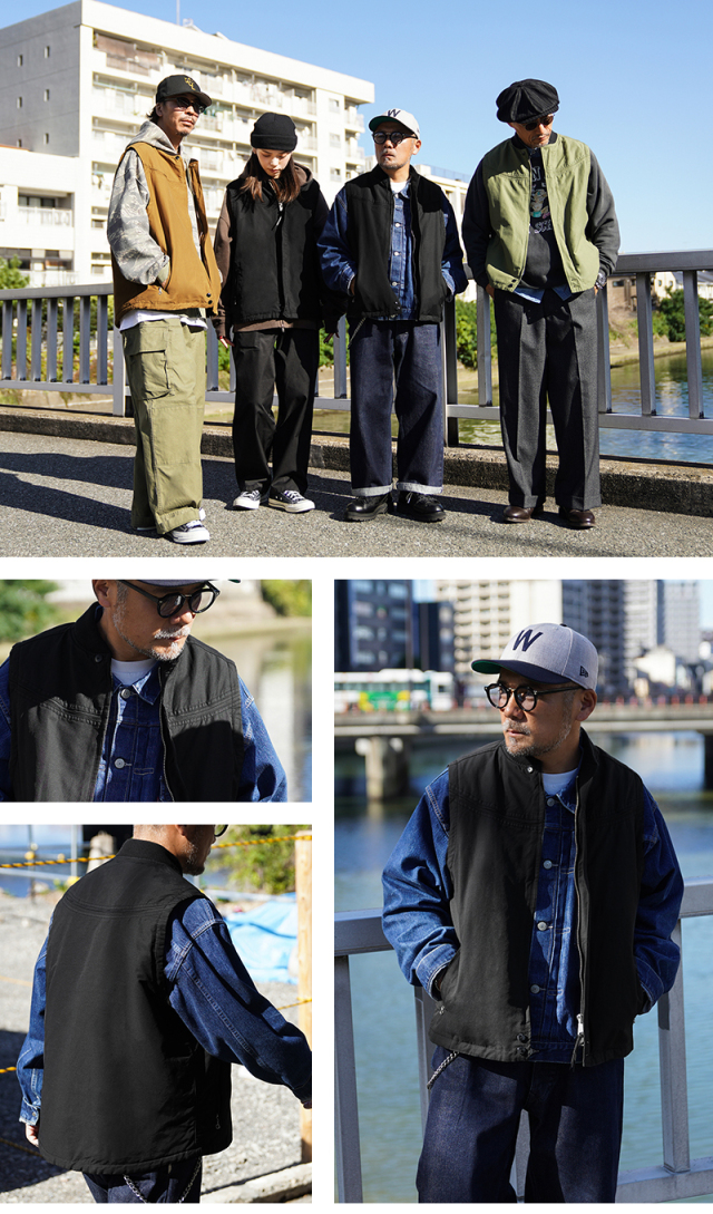 | 商品説明 | WAIPER×TOWN CRAFT 60’s ダービースタイル ベスト のご紹介です。 品番:TC25F003WP ダービージャケットは1960年代に発売され、1980年代にはハードコアシーンを中心にサンフランシスコで流行し、コアなローカルスケーターやパンクスに愛された逸品です。 数多くの著名人も着用したこともあり、メンズファッションシーンでは不動の地位を確立しています。 西海岸のアンダーグラウンドカルチャー背景を感じさせ、やんちゃな大人がカッコ良く着こなす??そんなジャケットです。 今回、60年代のTOWN CRAFT ダービージャケットをベースに【ダービーベスト】を作製しました。 シェルの素材には、70年代のアウトドアブランドで主力だった【コットンナイロン】を使用。 湿気を吸うとコットンが膨張して水分の侵入を防ぎ、通気性もよく、磨耗に強い堅牢な素材です。 さらに中綿には【THERMOLITE®】を採用し、「暖かさ」と「軽さ」を両立。ボリュームを抑えつつも防寒性は抜群です。 また、今回のモデルでは新色のMUSTARDとOLIVEを追加し、より幅広いスタイリングに対応。 フロントはダブルジッパー仕様にアップデートし、開閉の自由度と快適さを追求しました。 さらにポケットの深さを約1cmプラスすることで、実用性も向上しています。 見えない部分にもこだわり、ライナーのサテン生地には同系色で落ち着いたトーンのペイズリー柄を採用。 転写プリントで細かなラインまで美しく再現し、上品さをさりげなく演出しています。 ベストにすることで着用期間が長くなり、コーディネートのアクセントとしても重宝する一枚。 アメカジスタイルはもちろん、ミリタリーコーデとも相性抜群で、室内着や車の運転時にも活躍します。 |