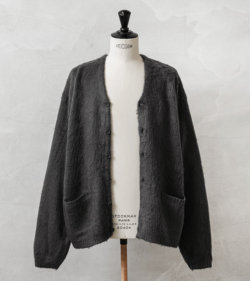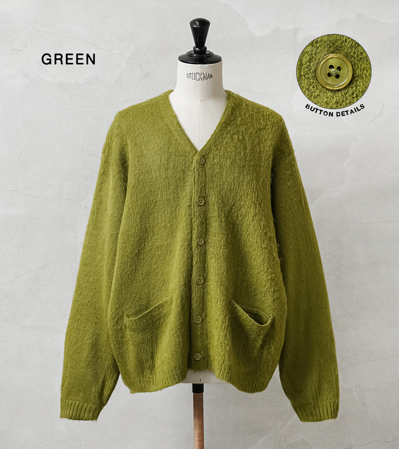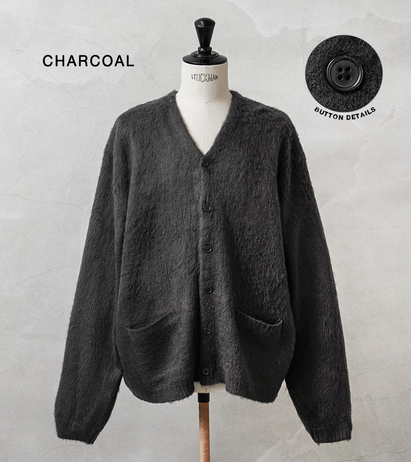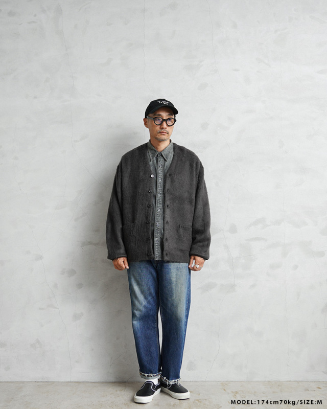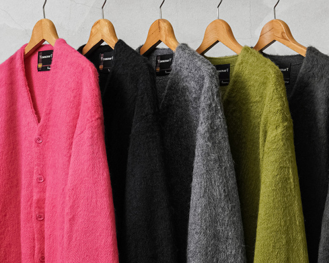 アメリカの日常をもとに新しいトレンドを生み出してきたTOWN CRAFTから、1960~70年代のアーカイブをアップデートしたカーディガンが登場。ボディはアクリル糸をダブルジャガード編みすることで、程よい厚みのあるしっかりとした編み地に仕上げています。さらに縫製後、編み地の表面をひっかくシャギー加工を施すことで、毛足の長いモヘア調になり繊細で柔らかな印象を与えてくれ、アクリル素材なのでお手入れも簡単。ガシガシ洗濯を繰り返すことで生まれる風合いはこなれ感と、まるでヴィンテージのような深い雰囲気になっていくのを楽しむことができます。首元をすっきりと見せ、インナーが映えるバランスの良いVネック、思わず両手を突っ込んでしまいたくなるベストな位置の両ポケット。ザックリと着こなせる落感のあるシルエット。