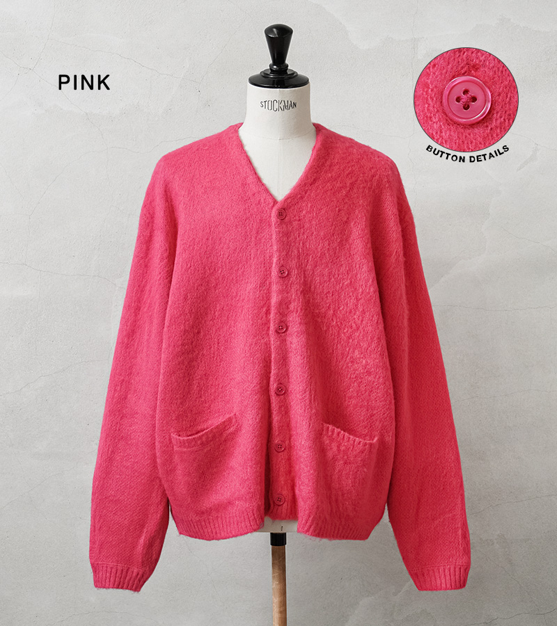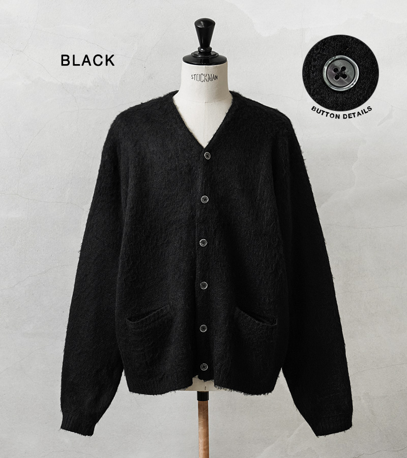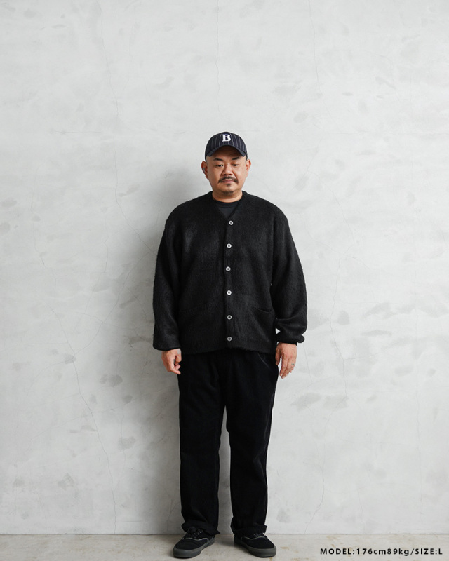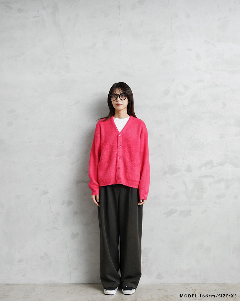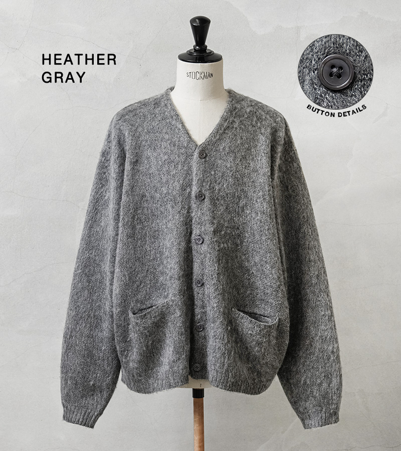 アメリカの日常をもとに新しいトレンドを生み出してきたTOWN CRAFTから、1960~70年代のアーカイブをアップデートしたカーディガンが登場。ボディはアクリル糸をダブルジャガード編みすることで、程よい厚みのあるしっかりとした編み地に仕上げています。さらに縫製後、編み地の表面をひっかくシャギー加工を施すことで、毛足の長いモヘア調になり繊細で柔らかな印象を与えてくれ、アクリル素材なのでお手入れも簡単。ガシガシ洗濯を繰り返すことで生まれる風合いはこなれ感と、まるでヴィンテージのような深い雰囲気になっていくのを楽しむことができます。首元をすっきりと見せ、インナーが映えるバランスの良いVネック、思わず両手を突っ込んでしまいたくなるベストな位置の両ポケット。ザックリと着こなせる落感のあるシルエット。