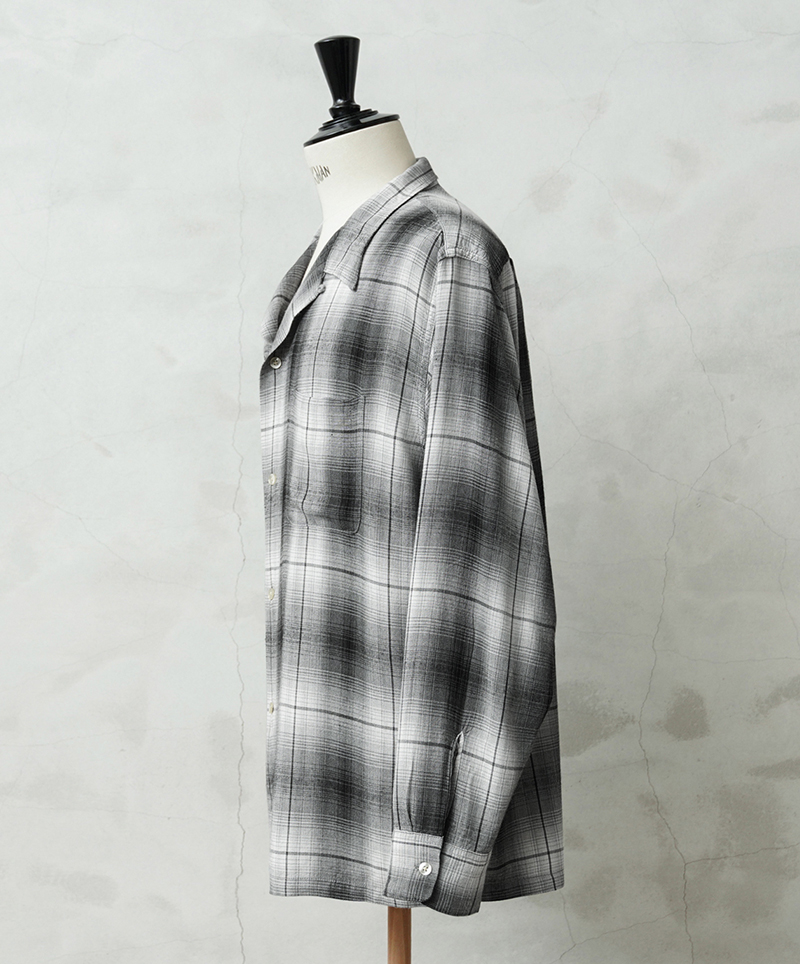 TOWN CRAFT 60'sのヴィンテージのアーカイブを元に作製したシャツになります。 1950年代より今に至るまで色褪せることなく我々を魅了し続ける【オンブレシャツ】。 【オンブレ】の語源はフランス語で「陰影」や「濃淡」を意味する言葉でアメリカではシャドーチェックとも言われています。 通常のチェック柄と比べると境目をぼかしたチェック柄が特徴で独特のグラデーションが魅力のひとつです。 今回はオンブレの特徴であるグラデーションチェックの再現に拘り試行錯誤しました。 数あるカラーバリエーションの中でも一番だと位置づけた【白黒オンブレ】1色にターゲットを絞りました。