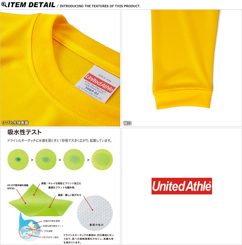 | 商品名 | United Athle ユナイテッドアスレ 5089-01 4.7オンス ドライシルキータッチ ロングスリーブTシャツ |
