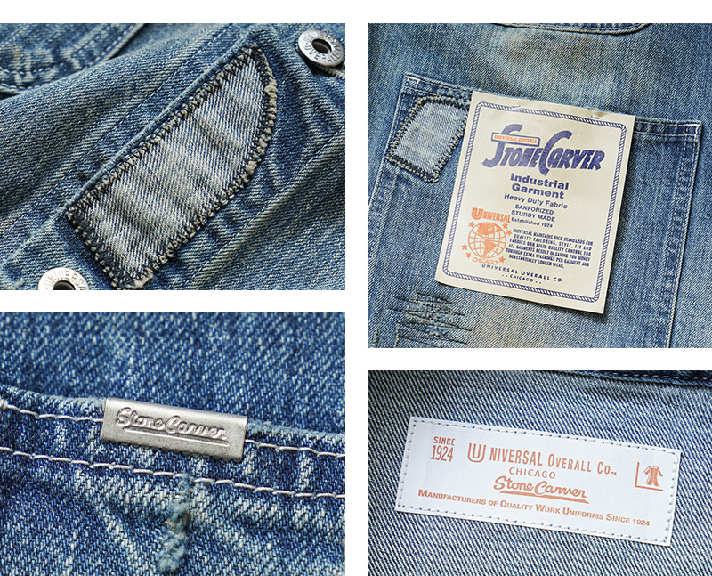 1924年にアメリカ、シカゴで創業したUNIVERSAL OVERALLは2024年で生誕100年となりました。そんなスペシャルイヤーに生まれた、100年目の原点回帰ともいえる“HERITAGE LINE”長い歴史から数あるアーカイブアイテムを再現したシリーズです。CONE DENIMをベースに、長年使い込まれたアーカイブを再現したリメイク仕様のカバーオール。リアルなダメージ感と色落ちが、ワークパンツの魅力を最大限に引き立てます。他にはない存在感で、コーディネートに個性をプラスできる一着となっています。