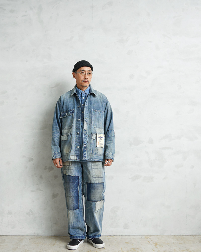 | 商品説明 | UNIVERSAL OVERALL HERITAGE LINE 12.75oz CONE DENIM カバーオール REMAKE のご紹介です。 品番:HT2433400-C 1924年にアメリカ、シカゴで創業したUNIVERSAL OVERALLは2024年で生誕100年となりました。 そんなスペシャルイヤーに生まれた、100年目の原点回帰ともいえる“HERITAGE LINE” 長い歴史から数あるアーカイブアイテムを再現したシリーズです。 CONE DENIMをベースに、長年使い込まれたアーカイブを再現したリメイク仕様のカバーオール。リアルなダメージ感と色落ちが、ワークパンツの魅力を最大限に引き立てます。他にはない存在感で、コーディネートに個性をプラスできる一着となっています。 フロントには大きな4つのポケットが配され、胸ポケットには小物収納に便利なフラップポケット、またワークウェアらしいペンポケットが備わっています。さらに肩やサイドなどの要所にはトリプルステッチ加工が施され、耐久性を高めつつワークウェアらしい無骨な表情を演出しています。また袖には自然な折りジワを再現したヒゲ加工が施され、動きのある部分にヴィンテージ感を演出しています。 ボタンはUNIVERSAL OVERALLオリジナルの刻印入りのネオバを完全リプロダクト。通常デニムの加工後に取り付けしますが、熟練の職人による技で、先にボタンを付けてから加工を回すことにより、生地だけでなく、ボタンのエッジにも加工感がある仕上がりになっております。左胸に取り付けられているワニマ(ネーム)も、当時のものを完全再現しております。 古き良きアーカイブの要素を踏襲した、カジュアルからワークスタイルまで幅広く対応するアイテム。経年変化も楽しめ、長く愛用できるデニムカバーオールとしてオススメの一着です |