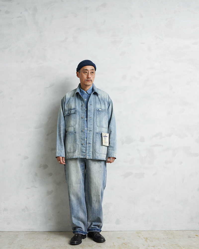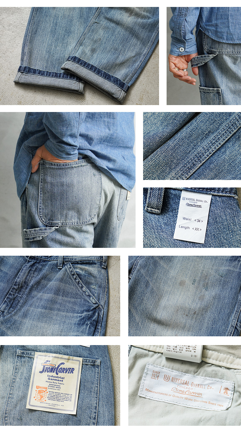 | 商品説明 | UNIVERSAL OVERALL HERITAGE LINE 12.75oz CONE DENIM ペインターパンツ VINTAGE LIGHT WASH のご紹介です。 品番:HT2433601-B 1924年にアメリカ、シカゴで創業したUNIVERSAL OVERALLは2024年で生誕100年となりました。 そんなスペシャルイヤーに生まれた、100年目の原点回帰ともいえる“HERITAGE LINE” 長い歴史から数あるアーカイブアイテムを再現したシリーズです。 職人の手作業によるUSED加工で、長年穿き込んだような自然な色落ちや擦れをリアルに再現したペインターパンツ。ムラ糸の風合いやオイル跡が、無骨でヴィンテージ感漂う雰囲気を演出します。穿いた瞬間から味のある表情を楽しめる、大人の一本となっております。 フロントやサイドには、ペインターパンツならではの工具や小物をスマートに収納できるポケットやハンマーループが配され、ワークウェア由来の機能美を随所に感じられます。サイドや股下など要所のステッチはトリプルステッチ加工で補強され、見た目の無骨さと高い耐久性を両立しています。 ボタンはUNIVERSAL OVERALLオリジナルの刻印入りのネオバを完全リプロダクト。通常デニムの加工後に取り付けしますが、熟練の職人による技で、先にボタンを付けてから加工を回すことにより、生地だけでなく、ボタンのエッジにも加工感がある仕上がりになっております。 古き良きアーカイブの要素を踏襲した、カジュアルからワークスタイルまで幅広く対応するアイテム。経年変化も楽しめ、長く愛用できるデニムペインターパンツとしてオススメの一着です |