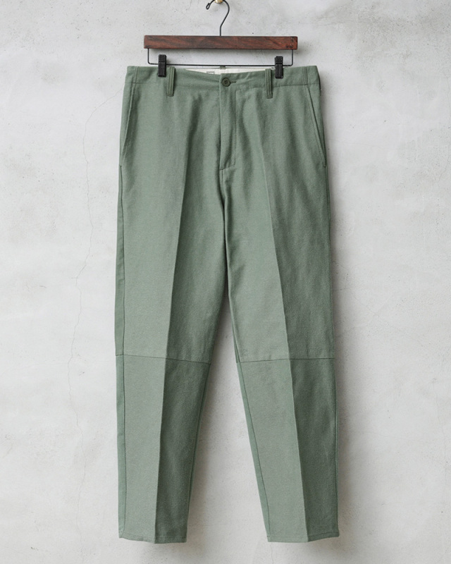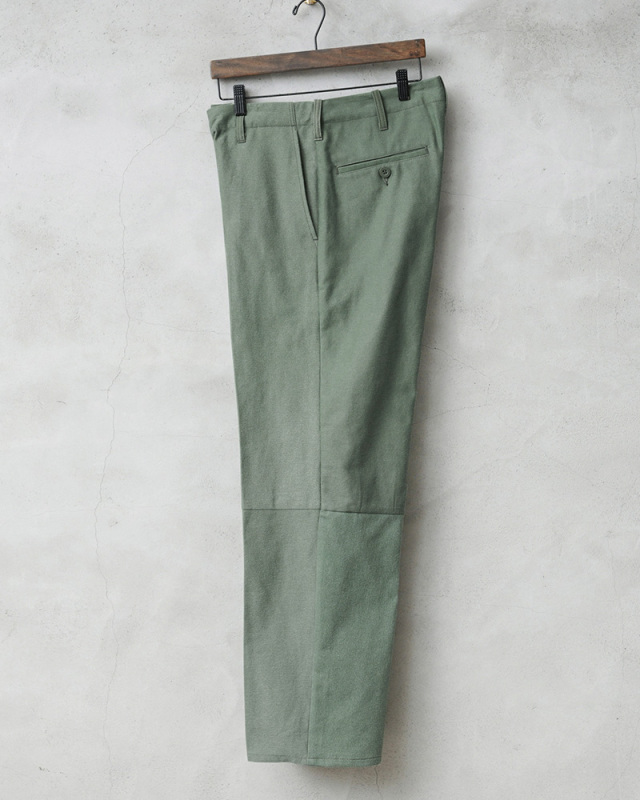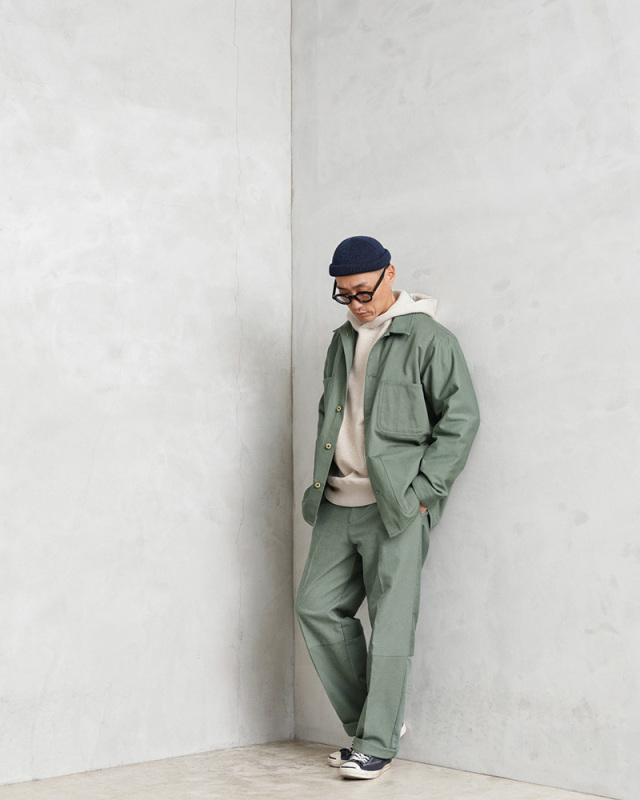 UNIVERSAL OVERALL定番のワークパンツデザインを、ランドリーバッグとして親しまれている米軍実物のバラックバッグを使用して仕上げたスペシャルなリメイクアイテムです。 動きやすいシルエット、合わせやすいシンプルなデザイン、そしてワークウェアブランドらしいタフな作りのワークパンツです。細すぎず太すぎないちょうどよいシルエットで、上品で落ち着いた雰囲気からカジュアル、ストリートスタイルまで幅広く活躍する一本です。 フロントのトップボタンには「UNIVERSAL OVERALL」のロゴ入りオリジナルボタン、遊び心を感じるロゴが総柄で印刷された裏地、右のバックポケットには目を引くオレンジのブランドタグなど細かいディテールにもこだわりを詰め込みました。 年代も状態も異なるUSEDファブリックを使用していますので、絶妙に色合いの異なるオリーブカラーが意図せずクレイジーパターンのような仕上がりになるのも魅力の一つ。軍放出アイテムを使用したリメイクだからこそ出せる味のある一本です。 |