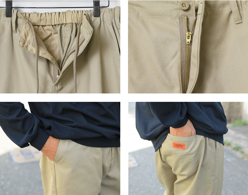 | 商品説明 | UNIVERSAL OVERALL ユニバーサルオーバーオール TC ワーカーズパンツのご紹介です。 品番:U2211674 通気性と速乾性に優れたポリエステルと、肌当たりの良い綿を使用したT/C素材を使用し、オールドスクールなワークパンツを再現。 ウエストゴム+内ヒモ仕様にし、約30inch~38inch相当まで対応可能にしたONE FITS ALLパンツ。 ベルトループもあるので、腰回りの調整は勿論のこと、腰の穿き位置などで様々なスタイルに合わせることも可能です。 リラックス感のあるフリーサイズに動きやすい軽量の生地感ながら、すっきりとした現代的なシルエットで、上品なタイトトップスにも、ストリートルックなオーバーサイズトップスとも相性の良い万能モデルです。 アウトドアアイテムに採用されるなど丈夫で使い勝手の良いT/C素材のパンツは、普段のコーディネートはもちろんのこと、体を動かす仕事や外での作業にも最適。ワークウェアブランドらしいタフな作りで、デイリーに着回しやすい優れものです。 |