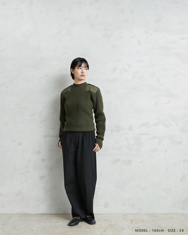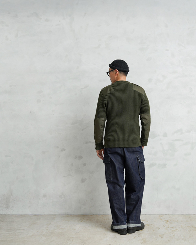 | 商品説明 | 実物 新品 デットストック 米軍 ウール コマンドセーター ODのご紹介です。 制式名称:SWEATER SERVICE WOOL WITH EPAULETTES 実物未使用の米軍の伝統的なラウンドネックのウールセーターが入荷しました。 シンプルながらインパクトのあるセーターで、肩のあて布、エルボーパッチやエポレットなどミリタリーでは定番のデザインであるコマンドセーターのディテールで、とても着回しが利くアイテムです。 肉厚なリブニットが使用された素材なので縦にも伸縮しますが、横への伸縮性にも優れています。暖かさもウール100%なので間違いない防寒性。ウールのストレスを感じることはないと思います。 程よく身体にフィットするデザインで、長めの袖はそのまま着用してもいいですし、折り曲げて着用すると風の侵入を防ぎ保温性を高めます。 第二次世界大戦初期にコマンドセーターという名称で呼ばれるようになったセーターですが、やはりこの本物の防寒性と、存在感は唯一無二。なかなか実物の新品は出てこなくなっていますのでこの機会にぜひ! |