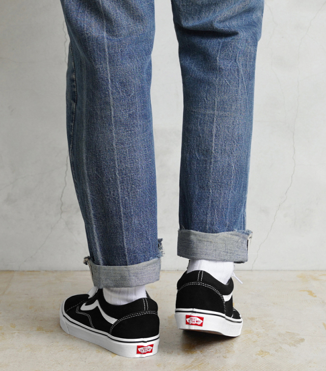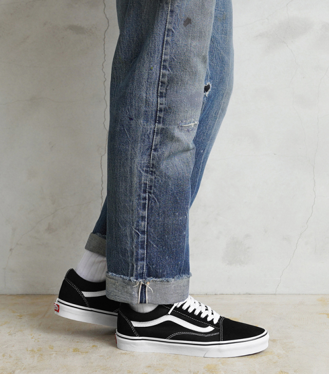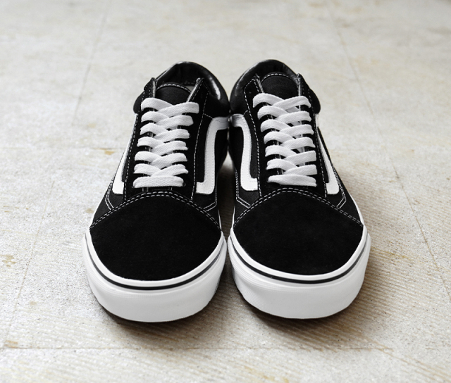 1977年にリリースされた永遠のクラシックである「OLD SKOOL」。 アッパーサイドに細めのレザーパーツで描かれた、波を連想させるようななめらかな美しい曲線「ジャズ・ストライプ(jazz stripe)」はVANSのアイコニックなディテールとして世界中で愛されています。また、フラットなソールにはVANSの特徴の一つであるワッフルソールが備えられ、他にはない高いグリップ力を発揮します。 アッパーサイドにはキャンバス生地、アッパーにはスエード生地の異なる素材を使用すことで他のスニーカーにはない落ち着いた雰囲気を生み出しています。シンプルなデザインの中で、異なる生地使いや、ダブルステッチとシングルステッチを使い分けた縫製にVANSのこだわりを感じます。