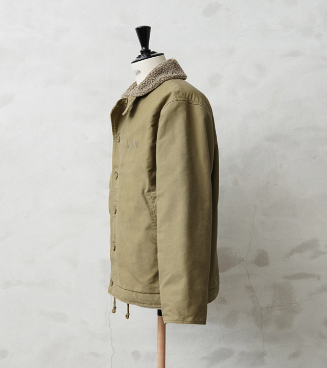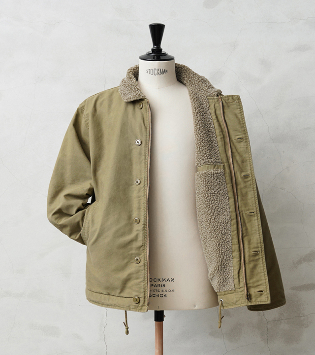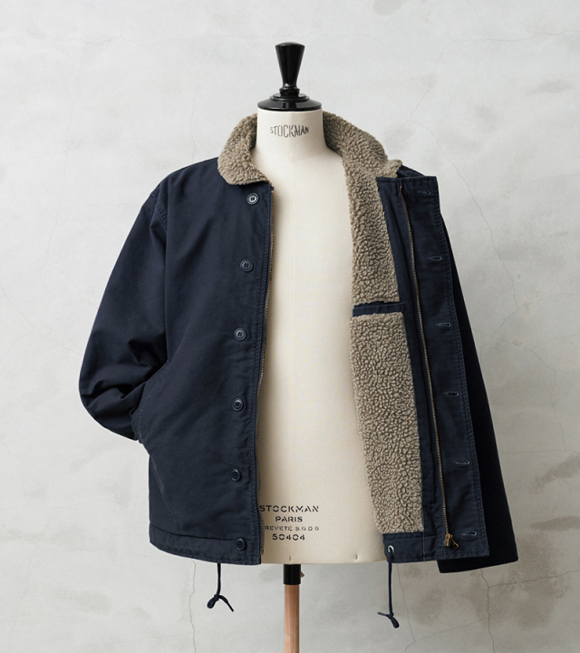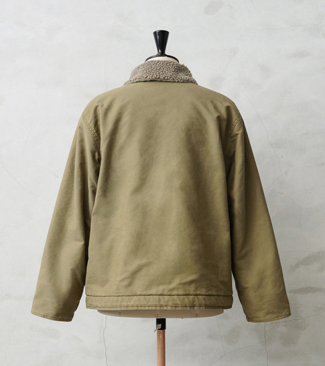 米海軍(U.S.NAVY)が生んだ傑作として名高く、多くのファンを魅了するミリタリージャケット「N-1デッキジャケット」をWAIPER.incが復刻再現!表地にはジャングルクロスと呼ばれる高密度に織られたコットンファブリックを採用。着こむほどに体に馴染む風合いが魅力です。防寒性に優れたライニングはアルパカを数年着込んだような、ボアフリースを使用。肌触りもよく、ウール特有のチクチク感が無く直接肌に触れても気持ちの良い着心地となっています。