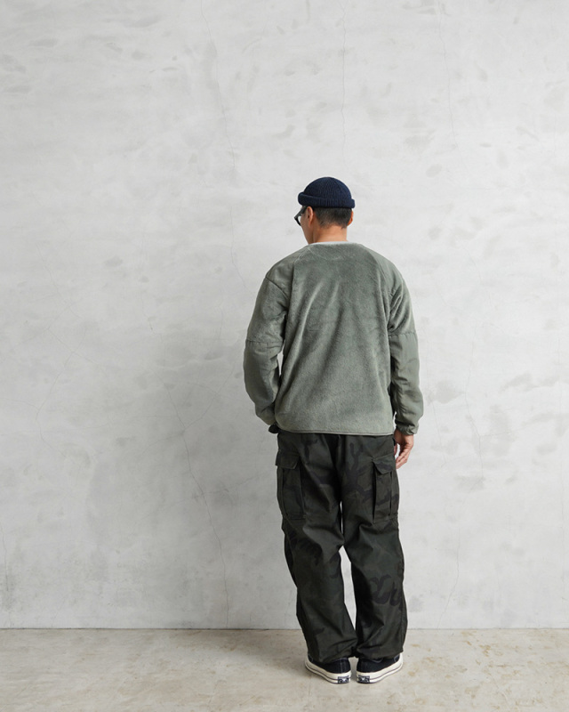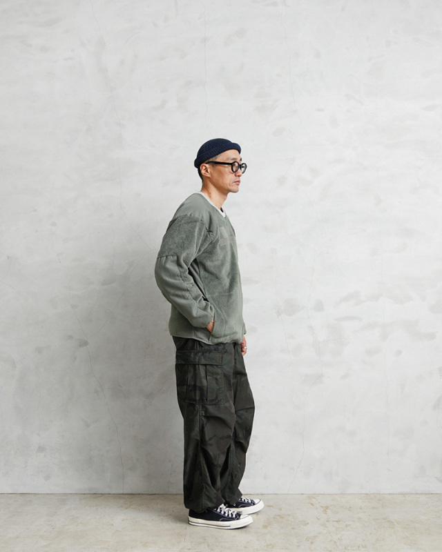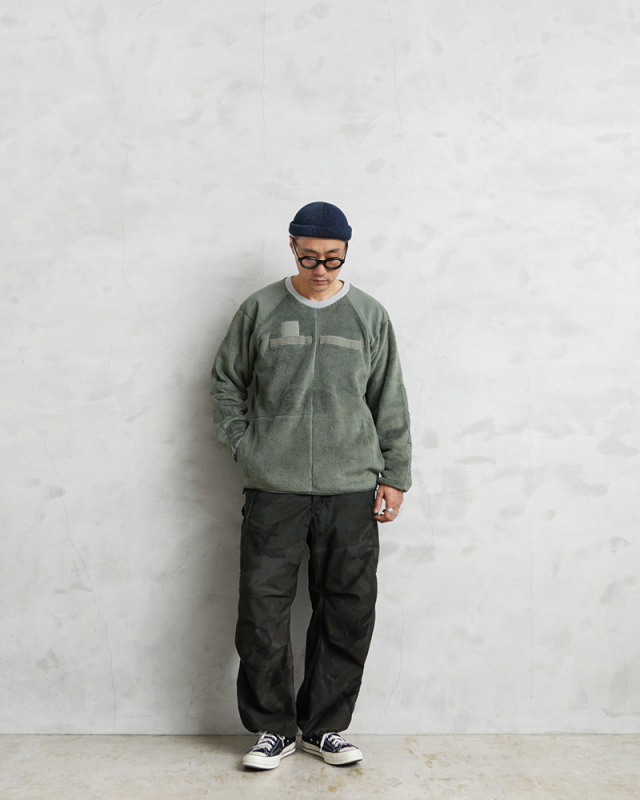 | 商品説明 | WAIPER.inc 実物 米軍 ECWCS Gen3 POLARTEC リメイク クルーネック フリースシャツ 日本製のご紹介です。 実物放出品の中でも最も人気のあるフリースであるECWCS GEN3のフリースジャケットを大胆にリメイク。フロントのファスナーと襟を取り外し、クルーネックのプルオーバーにリメイク。 POLARTEC(ポーラテック)はポリエステル繊維を特殊な技法で編み上げ、染色、ブラッシング、熱処理をしたもので、軽量で通気性・保温性・耐久性・速乾性に優れ、アウトドア衣料の素材に求められる全ての適性を完璧に備えた高性能素材です。また毛足を長くすることで、ふんわりとした肌触りを生み出しているのも大きな特徴です。 脇下両サイドには高い伸縮性のあるグリッド状フリース(Power Dry Grid)を採用し伸縮性、通気性を向上させています。 毛足の長いフリースは肌触りもよくスウェット感覚で着られるデザインはインナーとしてもより使いやすくなりました。パターンと縫製はすべて一点ずつ手作りで作られるため少量での生産となっています。こだわりのつまったWAIPER.incのリメイクアイテムとなります。 破れやファスナー不良など検品時に選別されたリジェクトコンディションのものを国内の職人により一点ずつリペアを施し再生させたアップサイクルプロダクトとなっています。 MADE IN JAPAN |