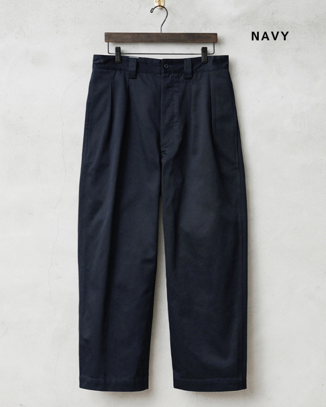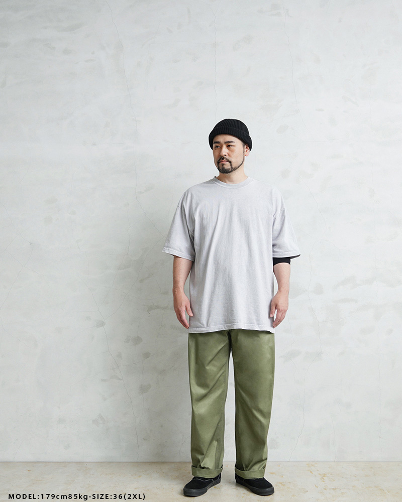 | 商品説明 | WAIPER.inc フランス軍 1950~60年代 M-52 ヴィンテージ ツータック WESTPOINT チノトラウザー のご紹介です。 品名:FRENCH ARMY M-52 WESTPOINT CHINO TROUSERS - TWO TUCK MODEL 品番:WP1002 フランス軍の名作パンツのひとつであるM-52チノトラウザーをWAIPER.incが素材にこだわり忠実再現 M-52は1950~1960年代にかけてフランス軍に採用されていたボトムスで、タックの入ったゆったりとしたヒップ周りと、太めのルーズストレートシルエットが特徴です。 ルーズ目なシルエットはロールアップした時のバランスが大変よく、ジャストで履くのはもちろん、オーバーサイズをウエストを絞って履くことにより、よりワイドなシルエットをお楽しみ頂けます。股下も70cmと75cmと選べる2サイズとなっています。 ウエストのツータック、深い股上にボタンフライ、フラップ付きのバックポケットなどディテールは非常にシンプル。半世紀以上前にデザインされたディテールを細部までこだわって再現しました。 素材には国産テキスタイルメーカーのウエポンクロスを採用。ウエストポイント(通称ウエポン)は双糸の糸を使用し非常に高密度で光沢感のあるなめらかな質感ながら、タフなワークウェアらしい無骨さを兼ね備えており、履き込むほどに味の出る素材となっています。 ヴィンテージの放出もめったに見かけなくなったM-52チノトラウザー。WAIPERが自信を持ってお薦めするイチオシの一本です。 |