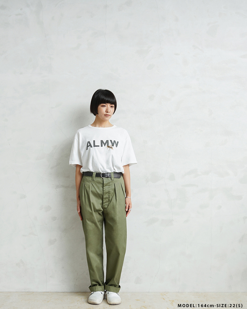 | 商品説明 | WAIPER.inc フランス軍 1950~60年代 M-52 ヴィンテージ ツータック WESTPOINT テーパードチノトラウザー Wのご紹介です。 品名:FRENCH ARMY M-52 WESTPOINT TAPERED CHINO TROUSERS - TWO TUCK MODEL 品番:WP1003 フランス軍の名作パンツのひとつであるM-52チノトラウザーをWAIPER.incが素材にこだわり忠実再現! M-52は1950~1960年代にかけてフランス軍に採用されていたボトムスで、タックの入ったゆったりとしたヒップ周りと、太めのルーズストレートシルエットが特徴ですが、こちらは現代的にアレンジしたテーパードシルエットで仕上げました。股下も70cmと75cmと選べる2サイズとなっています。 太ももから足首にかけてシルエットが絞られているので、着用した際にスッキリとしたきれいめなシルエットになります。ロールアップをしてもバランスがよく、ジャストで履くのはもちろん、オーバーサイズをウエストを絞って履くことにより、よりコントラストの効いたシルエットをお楽しみ頂けます。 ウエストのツータック、深い股上にボタンフライ、フラップ付きのバックポケットなどディテールは非常にシンプル。半世紀以上前にデザインされたディテールを細部までこだわって再現しました。 素材には国産テキスタイルメーカーのウエポンクロスを採用。ウエストポイント(通称ウエポン)は双糸の糸を使用し非常に高密度で光沢感のあるなめらかな質感ながら、タフなワークウェアらしい無骨さを兼ね備えており、履き込むほどに味の出る素材となっています。 ヴィンテージの放出もめったに見かけなくなったM-52チノトラウザー。WAIPERが自信を持ってお薦めするイチオシの一本です。 |