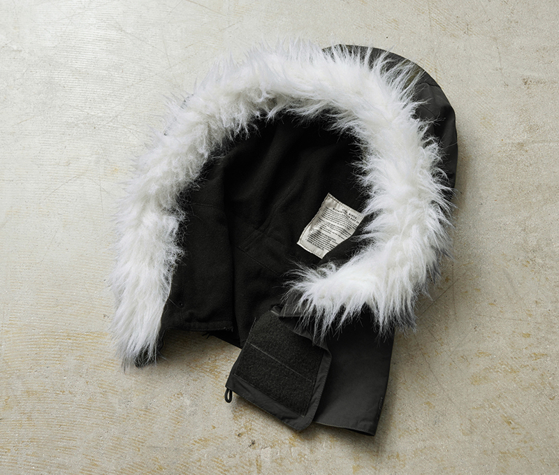 | 素材 | シェル コットン75%、ナイロン25% ライナー 表地:ナイロン100% 詰め物:ポリエステル100% フード 裏地:羊毛50%、ポリエステル50% ファー:アクリル82%、ポリエステル18% |