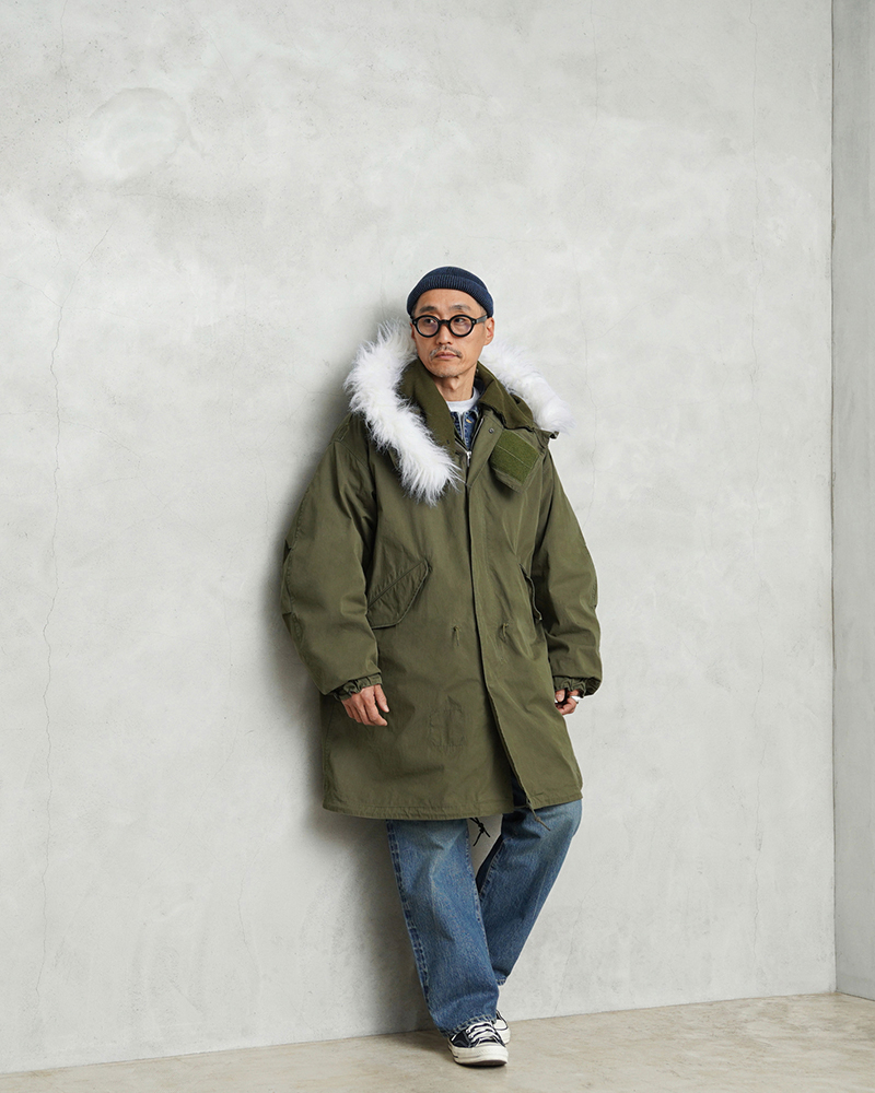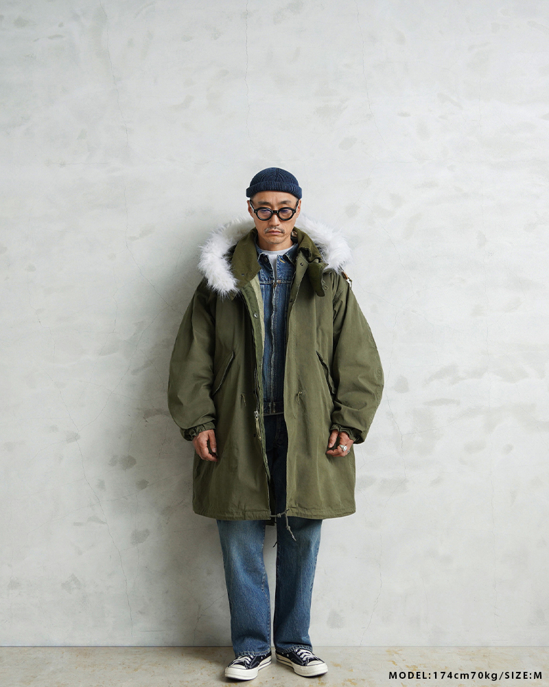 | 商品説明 | WAIPER.inc 米軍 M-65 フィッシュテールパーカー PRIMALOFTライナー フルセット 初期型 のご紹介です。 品名:PARKA,MAN’S,ARCTIC,M-65 品番:WP1004 コレクターアイテムとして年々、希少価値の高まりを見せるM-65フィッシュテールパーカー。 通称モッズコートと呼ばれる米軍のフィールドパーカーM-51の後継モデルとして、1965年に採用されたフード部分とライナーが脱着式のフィールドパーカーでシェル、ライナー、フードのフルセットをWAIPER.incで忠実に復刻させていただきました。 シェル、ライナー、フードが独立しており、フルセットで着用すれば真冬の完璧な防寒アウターに。気温や用途によっては、フードやライナーを外してスタンドカラーのライトアウターとして、また近年ではライナー単体での着用も目立ちます。 今回、WAIPER.incでは初期に製造されていたアルミジップをサンプリングし、”ARCTIC”の名前が記されたインストラクションラベルや見返し裏の芯、共布のライナー取り付けタブなど細部にまで当時のディテールを再現しました。 現在、市場では流通することが少ないコットンナイロンのポプリン素材。実物に近いものを再現するためにこのアイテムのためだけにイチから作り上げたオリジナルファブリックとなります。また、復刻では再現することができないと言われていたフードファーに関しても試行錯誤を繰り返し、質感や色合いなど非常にクオリティーの高いものを再現することができました。近年では、シェル単体で着用されることが多い印象ですが、ぜひフルセットで着用してもらいたい。それだけ自信をもっておすすめできるクオリティーとなっています。 セットで付属するライナーは実物をベースに単体での着用を想定した仕様にアップデート。 キルティングの中綿には1987年に米国で誕生した中綿繊維”PRIMALOFT”を使用。ボリューム感は変わらずに高機能な中綿素材にすることでより軽量且つ安心感のある保温性を確保しています。 近年ではライナー単体での着用をするコーディネートも増えたことで前立ての打ち合わせを留められるようにアレンジ。袖口のボタンについても取り付け用のタブを収納できるようにそれぞれエクストラボタンを追加。単体での着用の際にうれしいパッチポケットを取り付けることでライナーとしての機能性をアップ。さらにシェルに取り付ける際は内ポケットとしても機能します。 WAIPER.incならではなアップデートを加えた圧倒的自信作です。 |