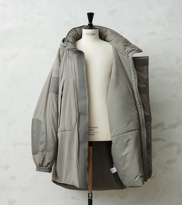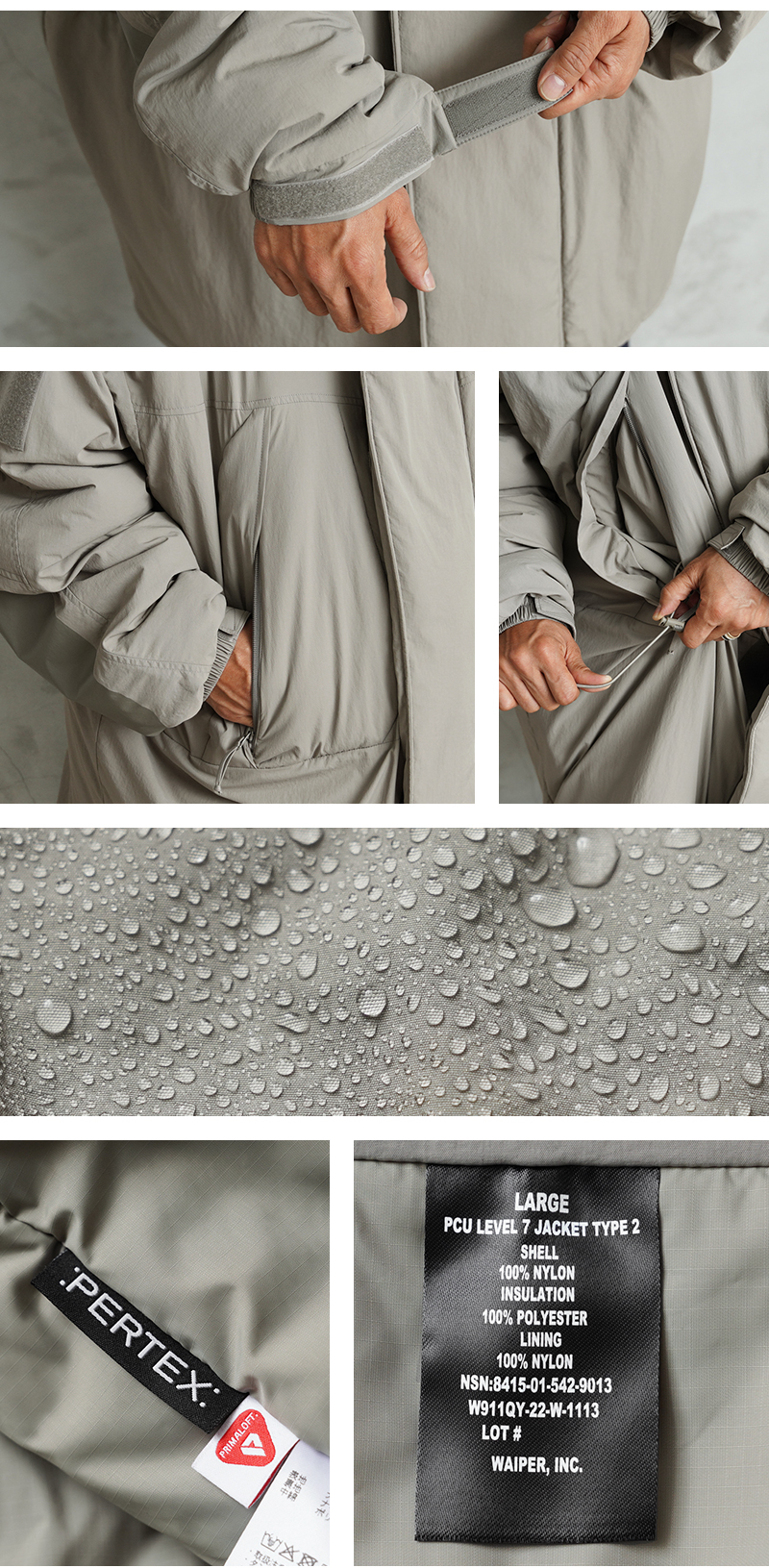 | 商品説明 | WAIPER.inc 米軍 PCU LEVEL7 TYPE2 PRIMALOFT モンスターパーカー PERTEX UNLIMITED のご紹介です。 品名:PCU LEVEL 7 JACKET TYPE2 SHELL 品番:WP1009 WAIPER.incより高機能素材PERTEX UNLIMITEDを使用したPCU LEVEL7 TYPE2 通称モンスターパーカーのご紹介です。 PCU(PROTECTIVE COMBAT UNIFORM)という名称で製作されたアイテムは、ECWCS(EXTENDED COLD WEATHER CLOTHING SYSTEM)と同様に気候に合わせてレイヤリングを調整する特殊部隊向けに考案されたレイヤリングシステムとなります。 その中でもLEVEL7は最も外側に着用する保温性に優れたアウターの部類となり、その中でもアウターの上から羽織ることを想定したTYPE 2は非常に大きなサイズ感の中綿コートとなります。 そのインパクトに優れたデザインはモンスターパーカーと呼ばれ、バックパックやTYPE 1の中綿ジャケットを着用した上からでも着用ができる大型の作りとなっており、近年ファッション性の高さも相まってコレクターアイテムとして人気を博しています。 市場でも出回ることが少ない希少なアイテムをWAIPER.incでは細部までこだわり製作させていただきました。 当店オリジナル初代から、さらに肘のコーティング材質の質感見直しなどマイナーチェンジを経て、さらにこだわりの強まった間違いなしの一着です。 2025年モデルは表地の素材をアップデート。実物に近い平織りナイロン(プレーンウィーヴナイロン)を再現しグレーのボディカラーもレベル7ジャケットに採用されているカラーにより近く見直しを行いました。 表地にはイギリスのPERTEX社が既存のアウトドアメーカー以外に向けて展開する"PERTEX UNLIMITED(パーテックス・アンリミテッド)"を使用。アウトドア、ミリタリーで培った防水透湿素材などさまざまなブランドもこぞって採用する注目ファブリックとなります。 さらに中綿には1987年に米国で誕生した中綿繊維”PRIMALOFT”を使用。雨に弱い羽毛の欠点をカバーする高い撥水性を有し、且つ天然羽毛並みの保温性、風合いをインシュレーション(断熱材)として広く使用されています。 実物と同様のサイズ感を再現し、ファスナー引手やディテールについても実物と遜色ない再現度となります。また、ひび割れが発生しやすい肘のコーティングは実物を再現しつつ、耐久性を高めてひび割れしにくい加工を採用しています。 実物と並べても見劣りしないクオリティーに仕上げた、WAIPERが自信を持っておすすめするアイテムです。 |