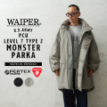 WAIPER.incより高機能素材PERTEX UNLIMITEDを使用したPCU LEVEL7 TYPE2 通称モンスターパーカーのご紹介です。 そのインパクトに優れたデザインはモンスターパーカーと呼ばれ、バックパックやTYPE 1の中綿ジャケットを着用した上からでも着用ができる大型の作りとなっており、近年ファッション性の高さも相まってコレクターアイテムとして人気を博しています。