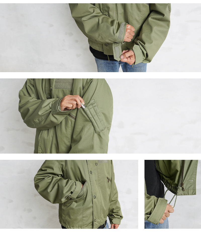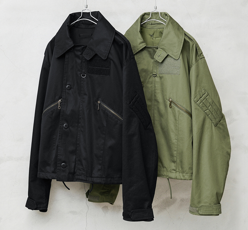 | 商品説明 | イギリス軍 RAF MK3 VENTILE ジャケット WAIPER.incのご紹介です。 品番:WP1010 英国王立空軍、RAF(ROYAL AIR FORCE)において通称“ショートアビエータージャケット”として知られる、イギリス軍を代表する、非常に有名なフライトジャケットです。 歴史は古く1960年代より採用され、2010年代までマイナーチェンジを経て長きに渡り採用されたフライトジャケットです。 着座での着用を想定したシルエットのため、身幅に対し、短めの着丈が特徴となっており、ボックス型のシルエットがファッション性の高さも相まってここ数年、人気の高まりを見せているアイテムとなります。 今回の製作にあたり、表地にはイギリス軍の名作に広く用いられる高密度のコットン素材であるベンタイルを使用。 国産テキスタイルメーカーであるDaiwaboのファブリックを採用し、超高密度で織られた生地は耐水圧、撥水、透湿、通気性の検査基準をクリアし、綿100%ながら優れた透湿防水機能をもつというベンタイルの機能を忠実に再現しています。 複雑なパターンメーキングもパタンナーと何度も打合せを行い、再現。特にこだわった前振りのアーム部分や裏地との間にサンドされるメッシュライニングをはじめ、随所に盛り込まれた副資材まで忠実に再現しています。 カラーは、ミリタリーオリーブに加え、テストサンプルとして存在するブラックを再現した二色展開となっています。 |