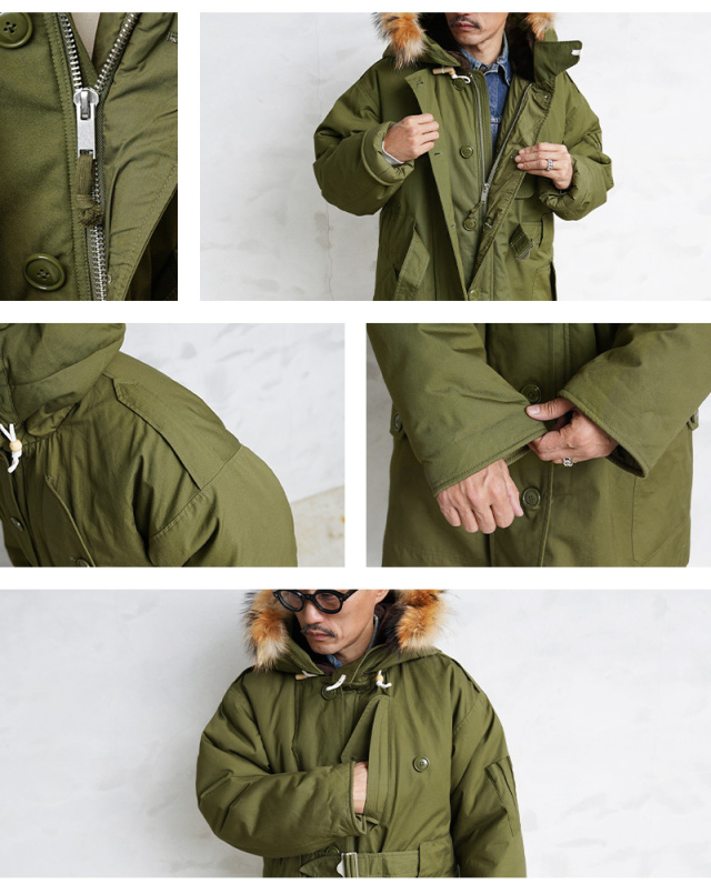 | 商品説明 | イギリス軍 RAF COLD WEATHER VENTILE PARKA WAIPER.incのご紹介です。 品番:WP1012 英国王立空軍、RAF(ROYAL AIR FORCE)において究極のウィンターコートとしてコレクターアイテムの間でも有名なRAF COLD WEATHER PARKAをWAIPER.incで製作しました。 1950年代にグランドクルー向けに優れた防寒コートとして発行されたものの、コストを度外視した作りはその弊害としてごく限られた生産で終わったとも言われています。 それもそのはず、表地にはイギリス軍で多く採用される高密度の撥水素材であるベンタイルコットン。ライニングにはウール製の中綿。 襟には肌触りの良いシープムートンを一枚革で使用。さらにフードにはリアルファーのトリミングと、すべてにおいて妥協のない作りはまさに究極。 カラーは実物に存在するオリーブとグレーの二色を再現。 部隊によって使い分けられたと言われていますが、その機能性の高さからRAF Mountain Rescue Service(イギリス空軍山岳救助隊)でも着用もされており、別名Mountain Rescue Parkaとも呼ばれています。 WAIPER.incではそれらのディテールを完全に再現。付属やディテールについても木製のフードのトグルボタンやバックルも一から製作。当時の非効率的な縫製仕様も実物のアーカイブを分析、再現させていただきました。 現代のミリタリーコートのベースを作ったとも言える完成されつくしたデザインは、時代を越えて色あせない魅力的な一着です。 |