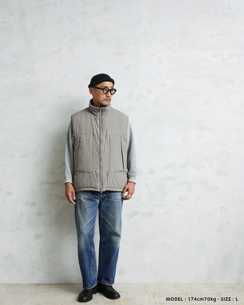 | 素材 | 表地:PERTEX UNLIMITED(ナイロン100%) 裏地:ナイロン100% 裏地メッシュ部分:ポリエステル100% 中綿:PRIMALOFT(ポリエステル100%) |
