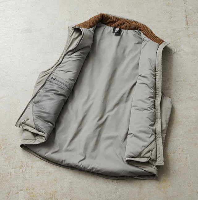 WAIPER.incより高機能素材PERTEX UNLIMITEDを使用したPCU LEVEL7 VESTのご紹介です。 LEVEL7は最も外側に着用する保温性に優れたアウターの部類となり、複数あるアウターの中でもLEVEL 7Aと呼ばれるベストは単体での着用からジャケットの下のレイヤードなど用途によって使い分けできるアイテムとなります。