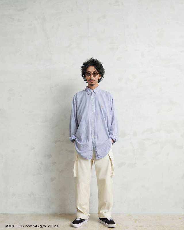 | 商品説明 | フランス軍 M-47 カーゴパンツ 後期型 HBT WAIPER.incのご紹介です。 品名:FRENCH ARMY M-47 CARGO PANTS 品番:WP1026 フランス軍の名作中の名作、ヴィンテージアイテムとしても非常に希少価値の高い「M-47カーゴパンツ」。 通称後期型と呼ばれるM-47は、生地にHBT(ヘリンボーンツイル)を採用。綾織の向きが交互に変わるヘリンボーン生地は耐久性にも優れ、経年変化した際の風合いも楽しめるワークウェアに適した素材となっています。 ヘリンボーンツイルの生地を製作するにあたり、実物の生地を分析、二種類の糸をミックスし織り上げることで、当時のヴィンテージさながらなムラのある織りを再現することに成功。織機の調整など何度もテストし納得の行く風合いの生地が完成しました。 前期モデルが1947年~1950年代ごろに採用されていたのに対し、今回製作した後期型は60年代に採用されていたと言われています。 特徴としてはマチがついた大きめなサイドのカーゴポケット。フラップの内側にはさらにボタン留めのフラップが配置された実用性重視のつくりになっています。ダメージを受けやすい両ヒザ部分は生地を二重に張り合わせダブルニー仕様。フロントは深い股上のボタンフライが特徴です。裾のストラップを調節してシルエットの変化もお楽しみいただけます。また、裾にかけて前期型よりもごくわずかにシェイプされており、よりキレイなシルエットとなっています。 クオリティとプライスを高い次元で両立した、WAIPERが自信を持ってお薦めするイチオシの一本です。 |