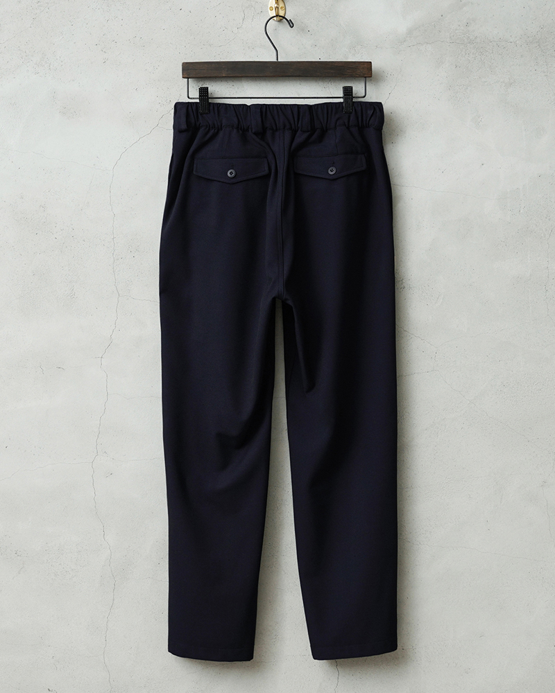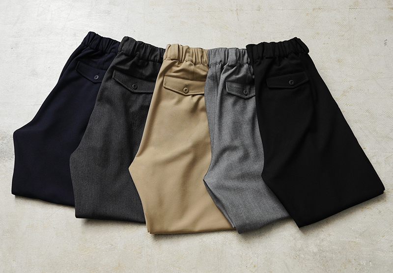 ユーロヴィンテージでも高い人気を誇るフランス軍のM-52チノトラウザー。そんな名作ボトムスの素材をアレンジして新解釈。なめらかな肌触りと優れた伸縮性を備えた高機能素材を使用したスラックスを製作しました。国産テキスタイルメーカーのストレッチファブリックを使用。しわになりにくくお手入れも楽な4WAYストレッチの生地は、縦横に優れた伸縮性を有します。繊維に浸透させたアルガンオイルにより肌当たりもなめらかでシルキーな質感が特徴です。