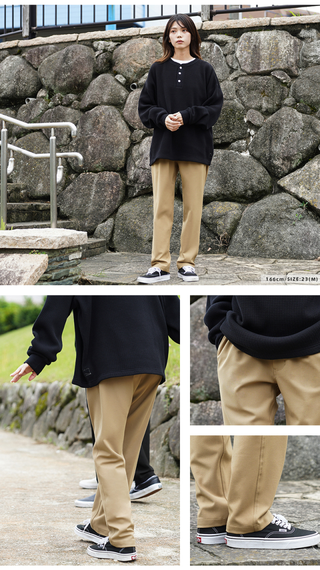 | 備考 | ウエストの採寸は平置き~ゴムを伸ばした状態での数値となります。ドローコード入りのため平置きの数値からさらに絞ることが可能です。 | ||||