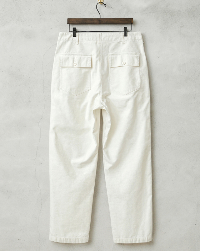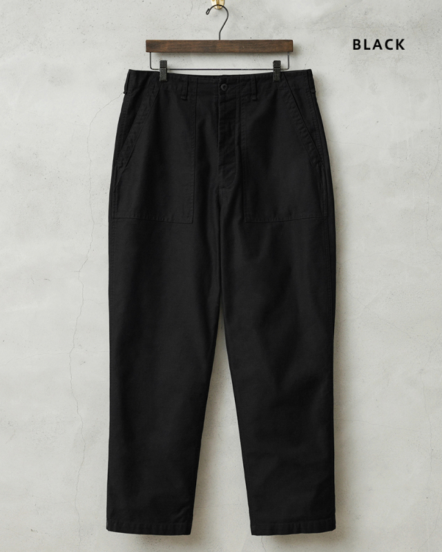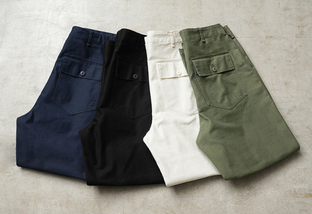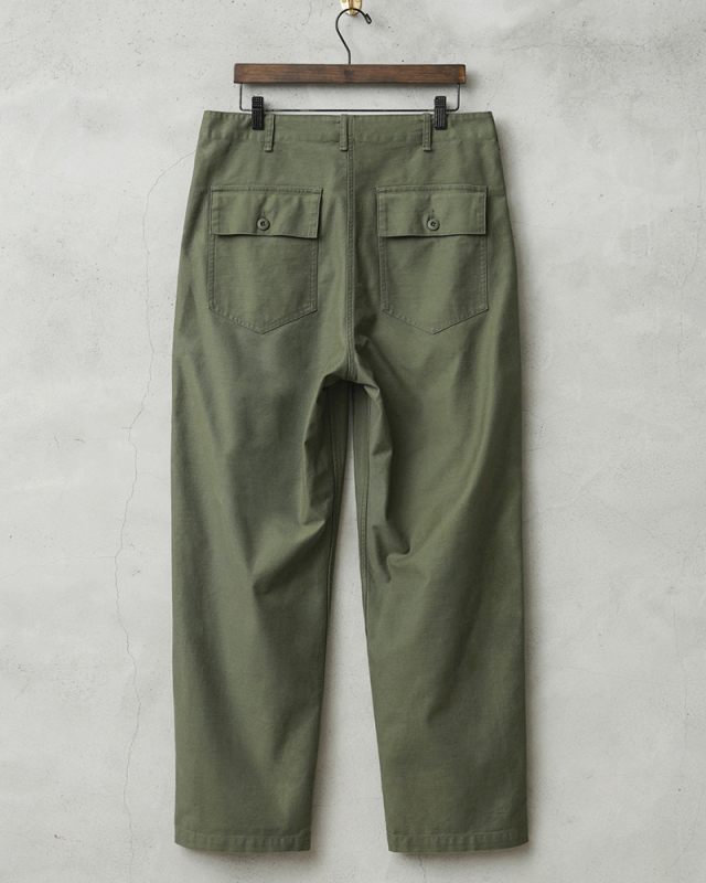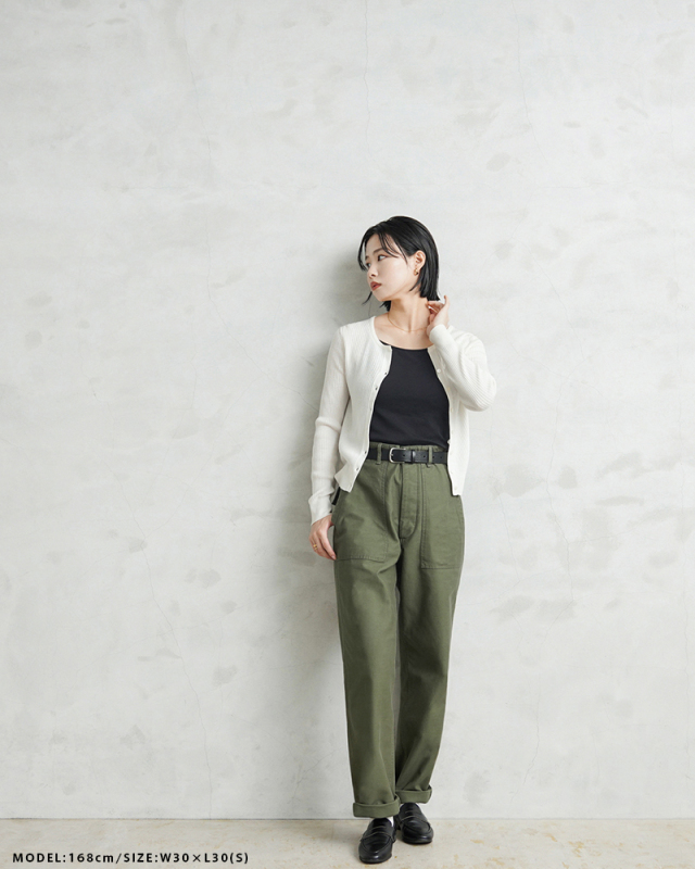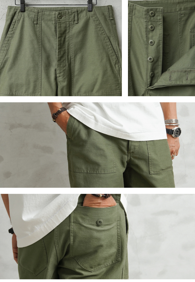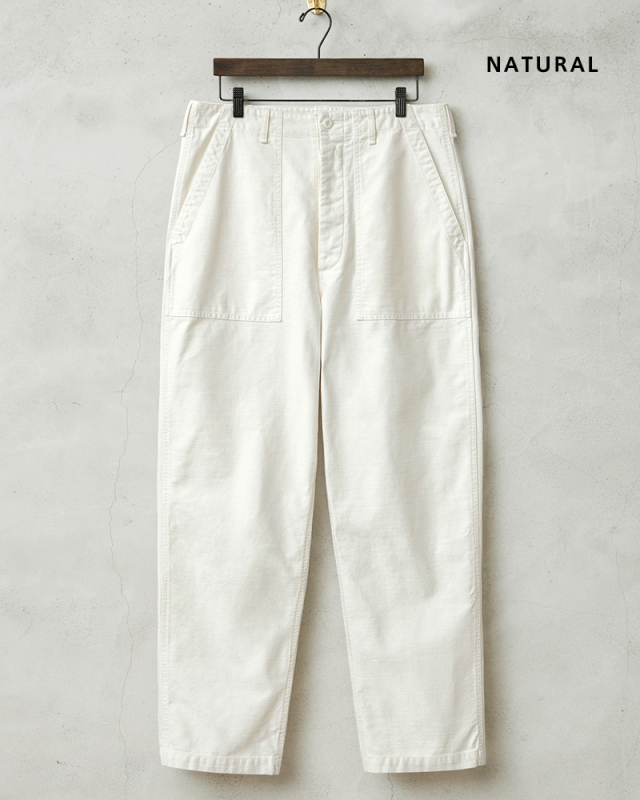 | 商品説明 | 米軍 OG-107 ユーティリティパンツ WAIPER.incのご紹介です。 品名:TROUSERS,MAN’S COTTON SATEEN OG-107,TYPE 1 品番:WP1028 米軍の名作パンツであるOG-107ユーティリティパンツ。ベイカーパンツやファティーグパンツという通称でもおなじみです。 コットンサテンを使用したシンプルなボトムスは、ユーティリティという名前の通り万能パンツとしてカジュアルなパンツの代表格として広く親しまれています。 今回、WAIPER.incで製作したものは最も広く認知されている60年代後期の物。 UFOボタンやポケットのWステッチなど特徴も再現しつつ、パッカリングも期待できる脇のダブルステッチやムラ糸のコットンサテンは履きこむほど風合いが増す素材となっています。 若干、テーパードしたシルエットはジャストサイズからオーバーサイズまで好みでお選びいただけます。カラーは定番のOLIVEに、NAVY、BLACK、NATURALを加えた4色展開となっていますので、必ずお気に入りの色サイズが見つかるはず。 なにかと使える万能ボトムスとしてワードローブに加えていただきたいおすすめの一品です。 |