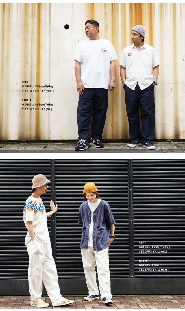 サイズ感、生地感共に良かったですが、多少生地が硬い感じがしたので、履き潰して風合を良くしたい。シルエットも良くヘビロテしてます。