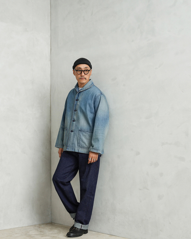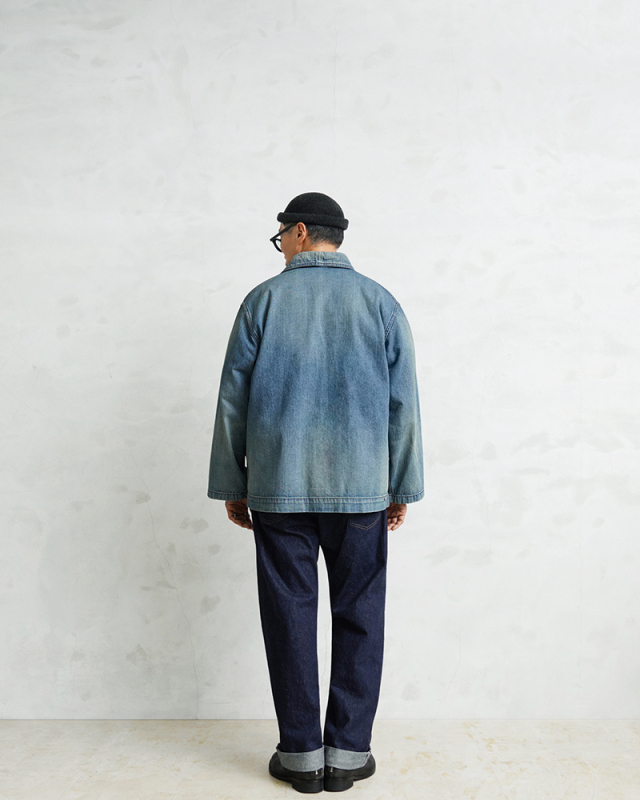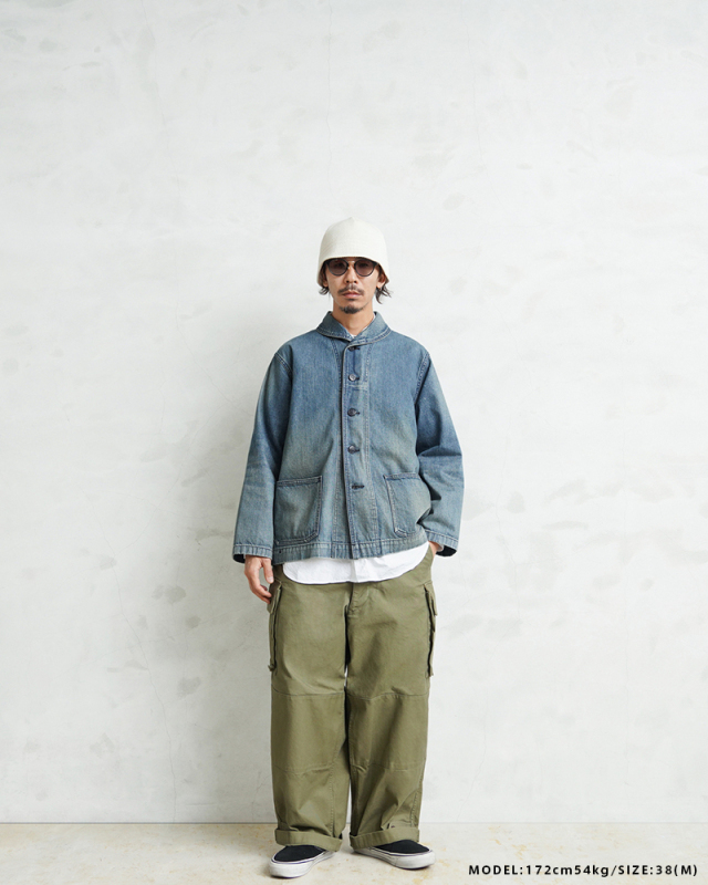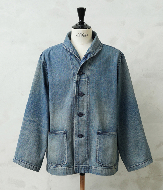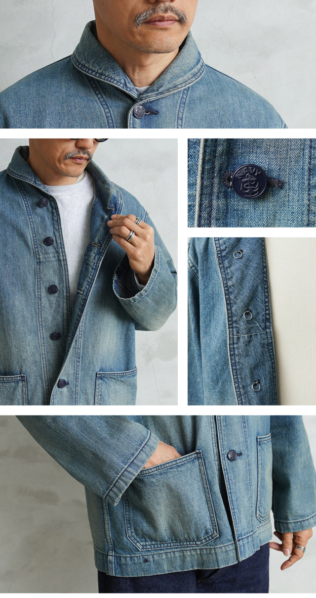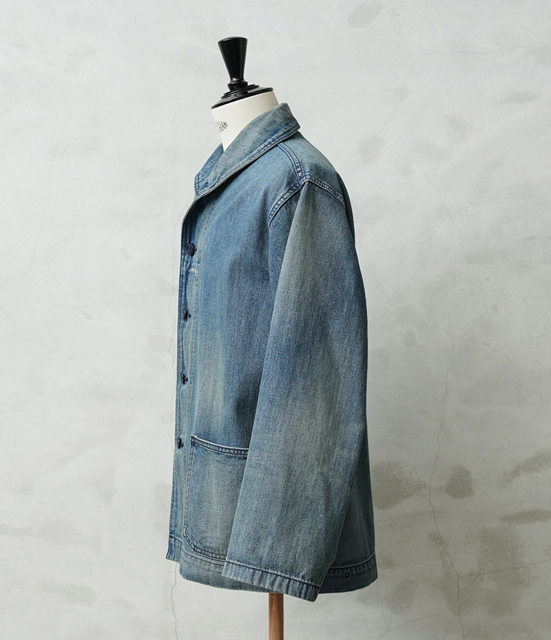 ヴィンテージマニアの間でも人気の高いモデルであるデニムショールカラージャケット。 海軍は陸軍に比べ、デニムを使用した製品が多いのが特徴ですが、その中でも特に人気の高いショールカラージャケットを、こだわりのファブリックとともに忠実に復刻しました。