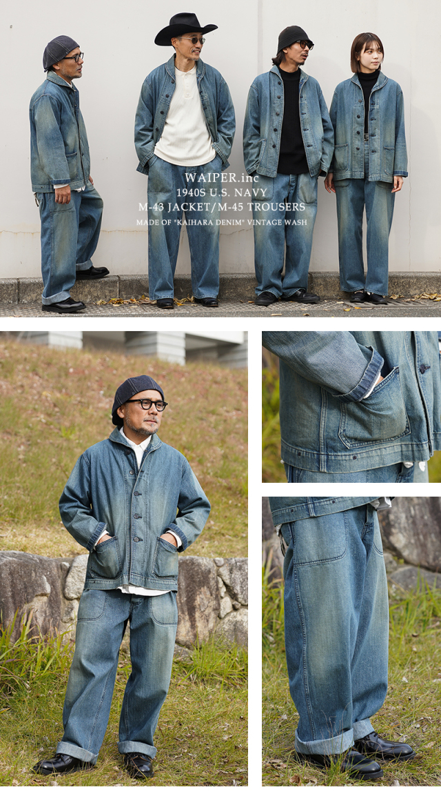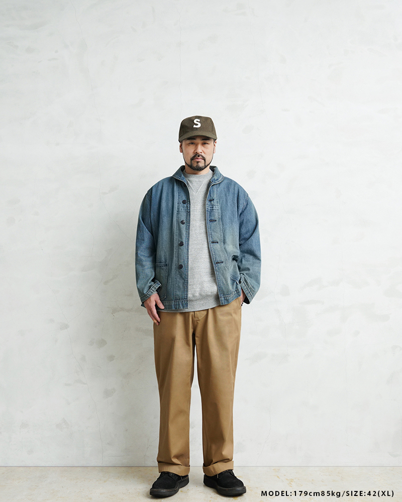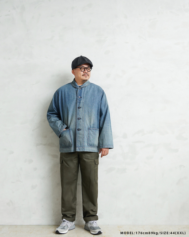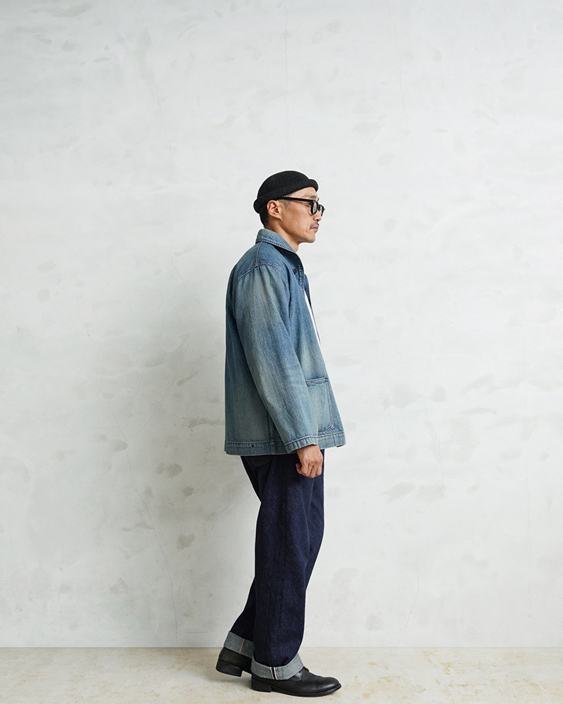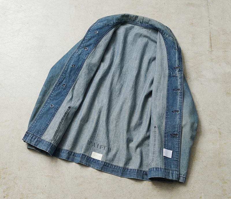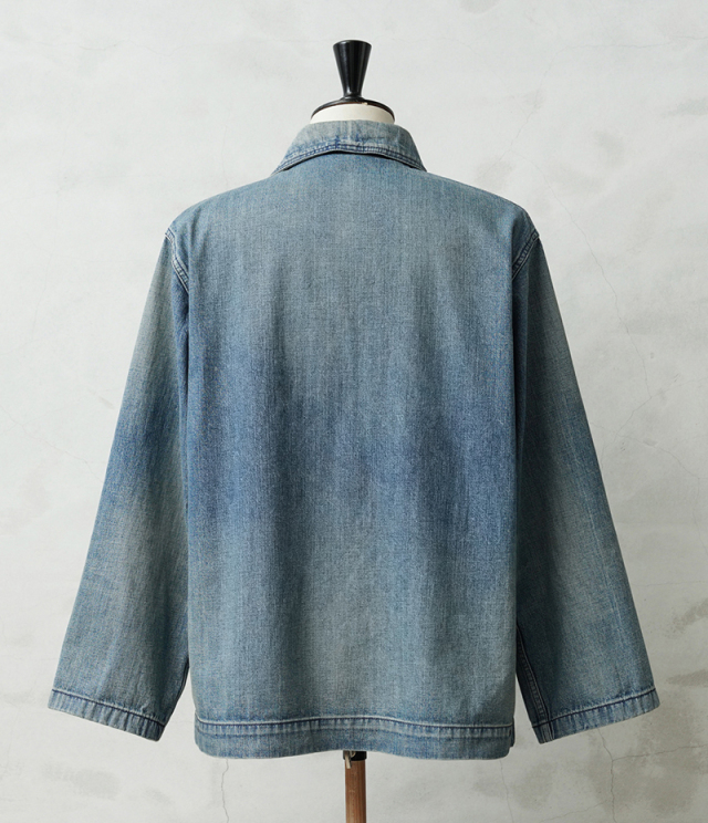 ヴィンテージマニアの間でも人気の高いモデルであるデニムショールカラージャケット。 海軍は陸軍に比べ、デニムを使用した製品が多いのが特徴ですが、その中でも特に人気の高いショールカラージャケットを、こだわりのファブリックとともに忠実に復刻しました。
