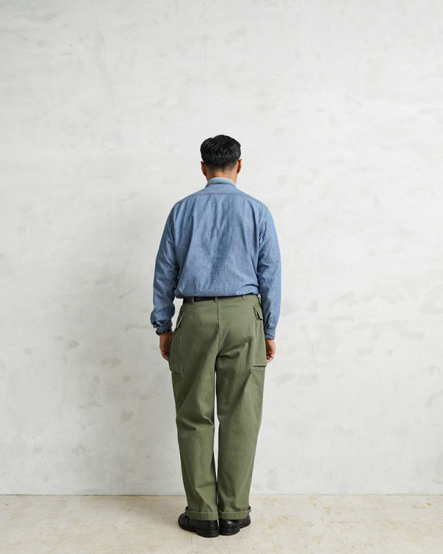 ヘリンボーンツイルがかなり良い。フェードも膝あたりは既に出て来ました。色落ちも早い商品だと思います。