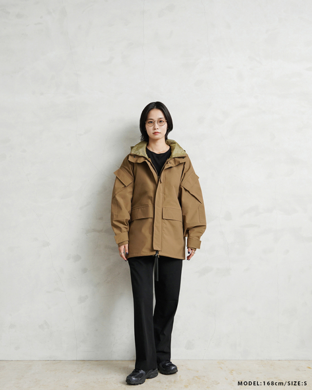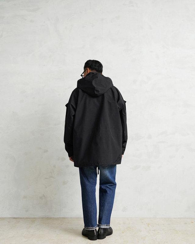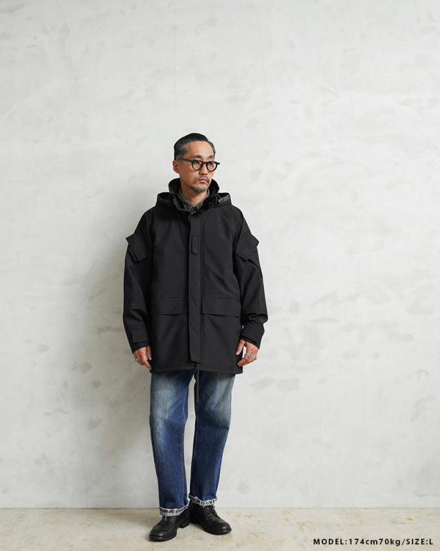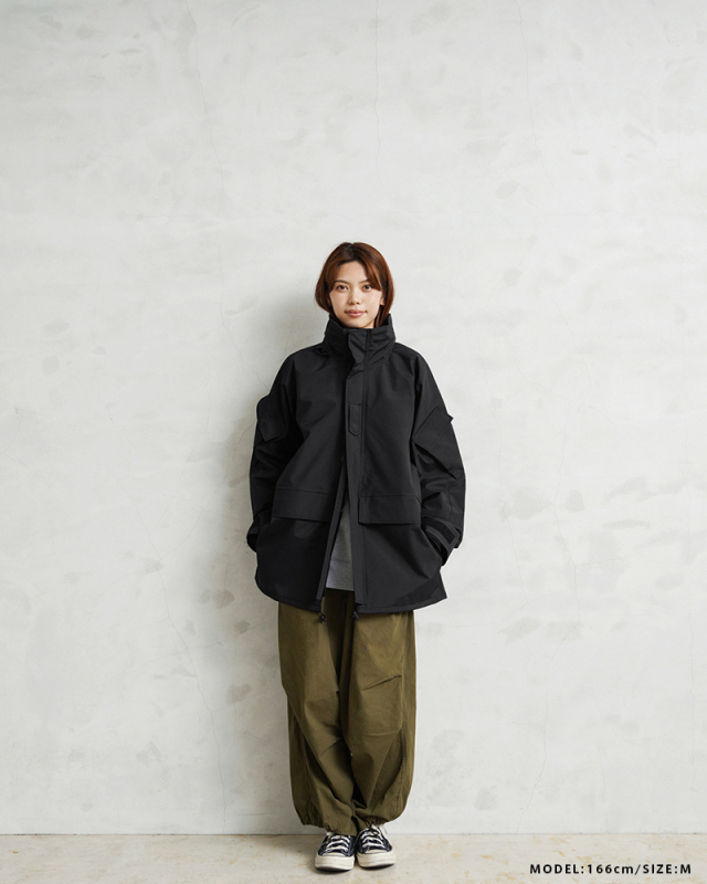 173センチ/67キロ サイズLを購入しました。生地感はパリッとしていて、雨も弾きとても良いです!身幅に関してはかなりゆとりがあります。リュックを背負って着てもゆとりがあります。ただ、元々そのように着用しようと思っていたので良い感じです。