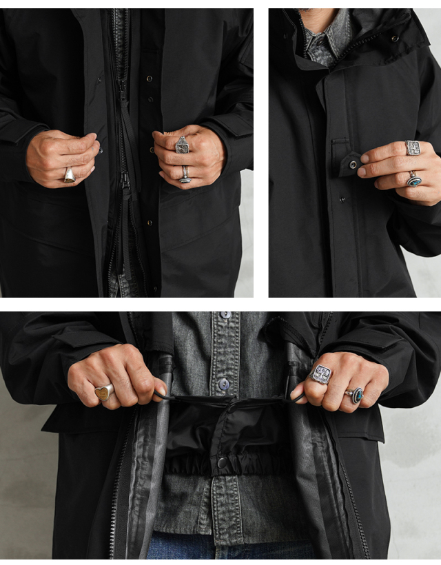 173cm、73kgで黒のLサイズを購入。サイズ表記を見るとMサイズがジャストと思っていたのですが。セール価格であったため、購入。着てみたところ、大きすぎる感じはなく、買って正解でした。通勤で着ていますが、多少の雨でも平気だし、昼間暖かいときは、脇を開けて調整できるのでとても便利ですね。