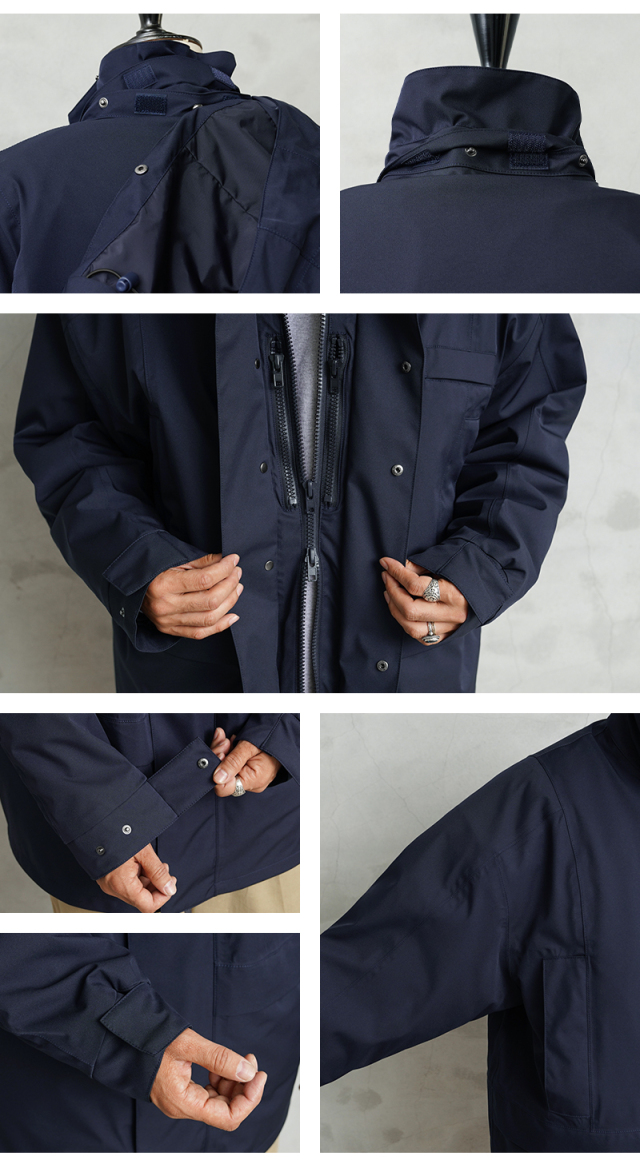 | 商品説明 | フランス軍 MARINE ROYALE(マリンロワイヤル)WATERPROOF パーカー PERTEX UNLIMITED WAIPER.inc のご紹介です。 品番:WP1074 フランス軍の名作として名高いフランス海軍の現代ミリタリーパーカー。放出品は一度限りと噂されるほど希少な一着で、当店でも大変ご好評いただいたモデルをWAIPER.incがリプロダクトしました! 素材には、WAIPER.incプロダクトでおなじみ、イギリス発の高機能ファブリック“PERTEX UNLIMITED(パーテックス・アンリミテッド)”を採用。 裏面にコーティングが施された表地は、しなやかさと高い撥水性を両立。適度なハリと弾力があり、他国製のレインシェルにはないソフトな着心地が魅力です。 シェルはファスナーとスナップボタンで閉じる比翼仕立てになっており、風の侵入を防ぎます。フロントには縦型のハンドウォーマーポケット、ウエスト部分にはボタンなどがなく手をスムーズに出し入れできる雨蓋付きのポケット、左胸上部には、ワイヤレスイヤホンなどの収納に便利な小型ポケットを配置し収納性も抜群。 フードはスナップボタンで簡単に取り外しができ、ドローコードで調整も可能。襟元にはスナップボタン留めのチンストラップがあり、フードを留めることで首元を二重に覆い、保温性を向上させます。 実物ではシングルのコイルファスナーでしたが、WAIPERでは操作性を向上させるため大型のビスロンジップに変更。さらにダブルジップ仕様にすることで、コートの裾を広げての着用も可能になりました。 ライナーにはマイクロファイバーフリース素材を採用し、優れた保温性と滑らかな肌触りを実現。ナイロンとの切り替えデザインにより袖通しもスムーズで着脱が簡単、またフリースライナーはファスナーで簡単に取り外せる仕様になっています。 WAIPER.incならではの珠玉のリプロダクトは、「本物を超える」ことを目指して完成しました。 機能とデザインに優れた一着として愛称を考えた結果、当店では「MARINE ROYALE(マリンロワイヤル)パーカー」と命名。 たくさんのお客様にも親しまれるほど浸透した希少な現代フランス軍のコート。妥協なくアップデートを重ねて誕生した珠玉のリプロダクトは、本物を越えることを目指したWAIPER.incならではな一着となっています。 |