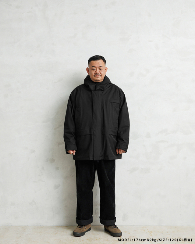 182cm91kgの固太り体型で、黒のLサイズを購入。程良いゆとりのあるサイズ感。とにかくシルエットが良いので使い易い。今から着られるシーズンが待ち遠しいです。