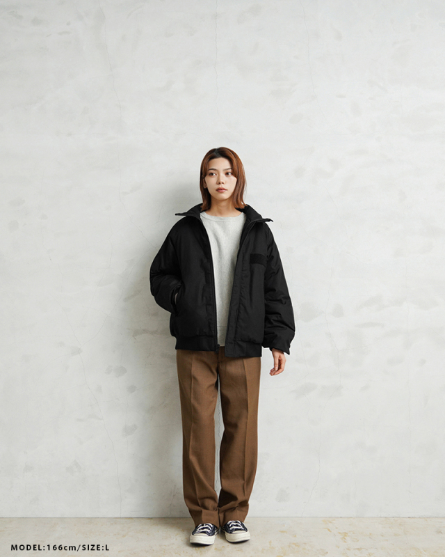 表地:コットン100% 裏地:コットン100% 中綿:ポリエステル100% リブ:アクリル85%、ポリエステル13%、ポリウレタン2% |