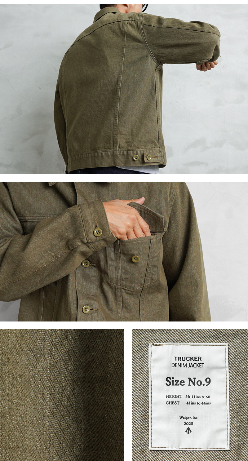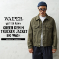 | 商品名 | WAIPER.inc イギリス軍 ヴィンテージ グリーンデニム トラッカージャケット バイオウォッシュ MADE OF “KAIHARA DENIM” |