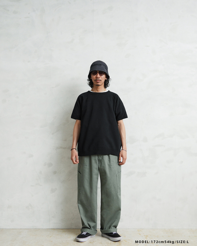 | 商品説明 | WAIPER.inc VINTAGE クルーネック S/S スウェットシャツ MADE IN JAPAN 品番:WP1098 ミリタリーコーディネートと切っても切れない関係にあるアメカジ。 近年のレトロ回帰の流れからも、今改めて注目を集めているのが「ヴィンテージスウェット」です。 カーゴパンツやデニムと抜群に相性の良い、クラシックな半袖スウェットをWAIPER.incがオリジナルで製作。 アーカイブピースをベースに再現した王道のヴィンテージデザインは、素材・染色・縫製のすべてを日本製にこだわった一着です。 生地には、10.5オンスのコットン100%コーマ裏毛を採用。 高品質なコーマ糸を使うことで、素肌に着ても心地よいなめらかな肌触りを実現しています。 カラーはレッド、ネイビー、ブラックの3色展開。 国内の加工工場にて製品洗い加工を施し、着用初日からこなれ感のある自然なアタリを演出。 過度にハードではない絶妙な仕上げによって、デニムやミリタリーアイテムと組み合わせたときにも違和感なく馴染みます。 王道の半袖スウェットはTシャツという選択肢を、あえて外したくなる。そんな一着に仕上がりました。 MADE IN JAPAN |