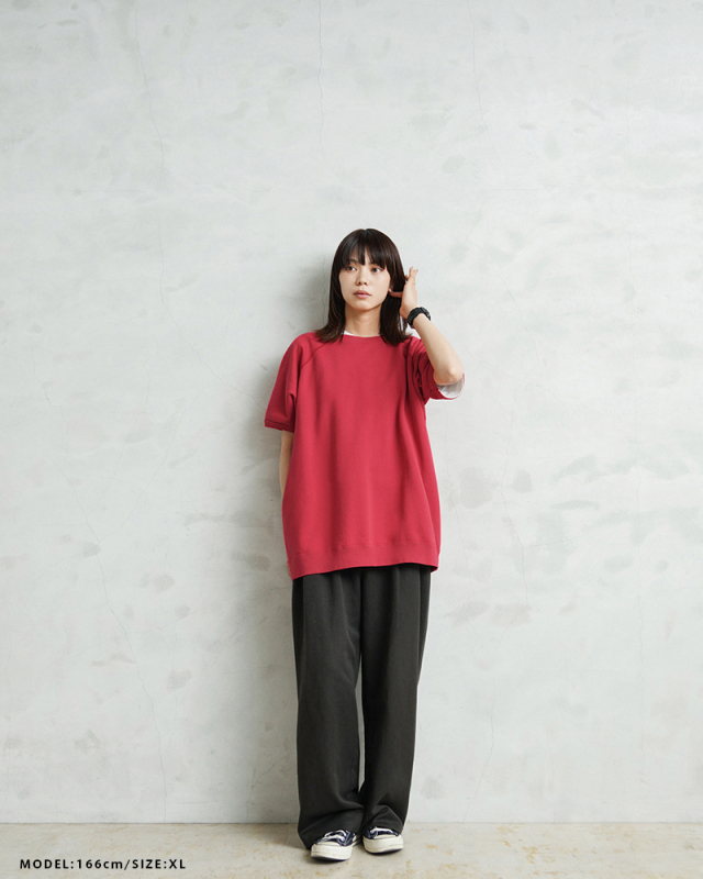 178センチ、65キロでXLを購入。半袖とは言え、裏毛仕様になっているものの通常のTシャツより肉感もあるので夏の着用は厳しい。秋口にはストレッチフライスのタンクトッフや7分袖に合わせてレイヤードを楽しみたいと思います。ビンテージを踏襲したカラーリングとシルエットが最高でした。