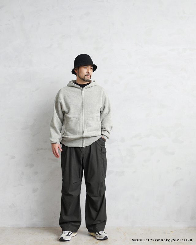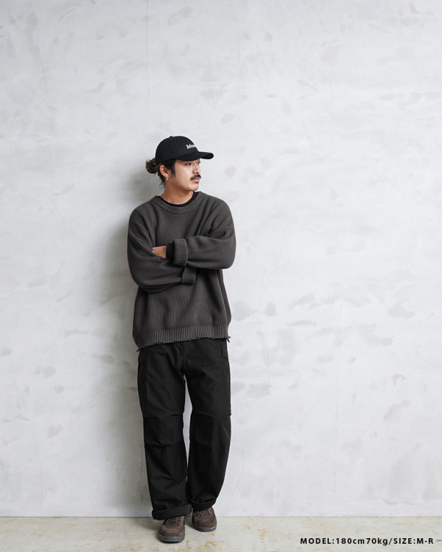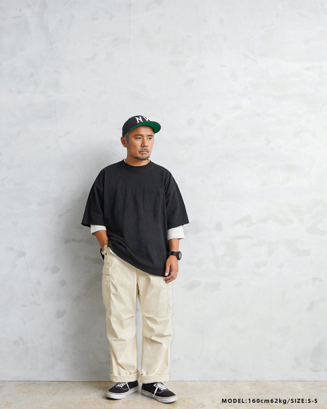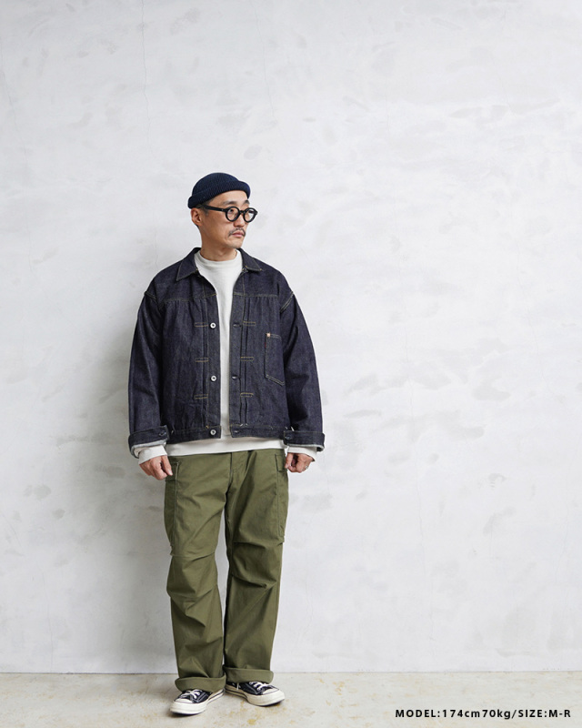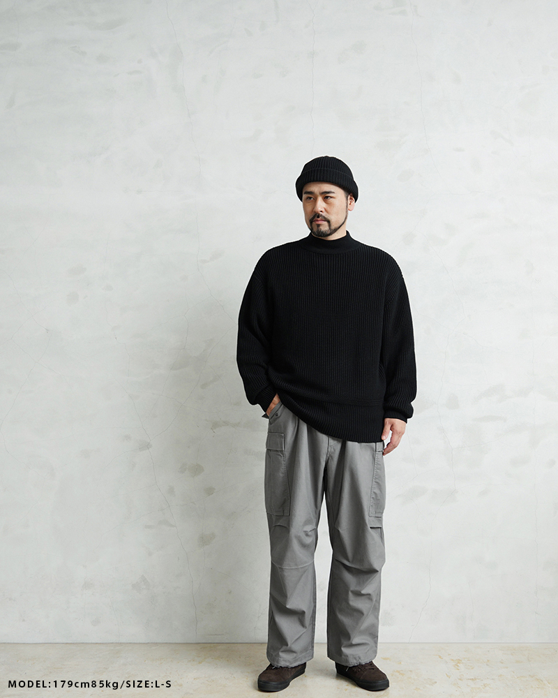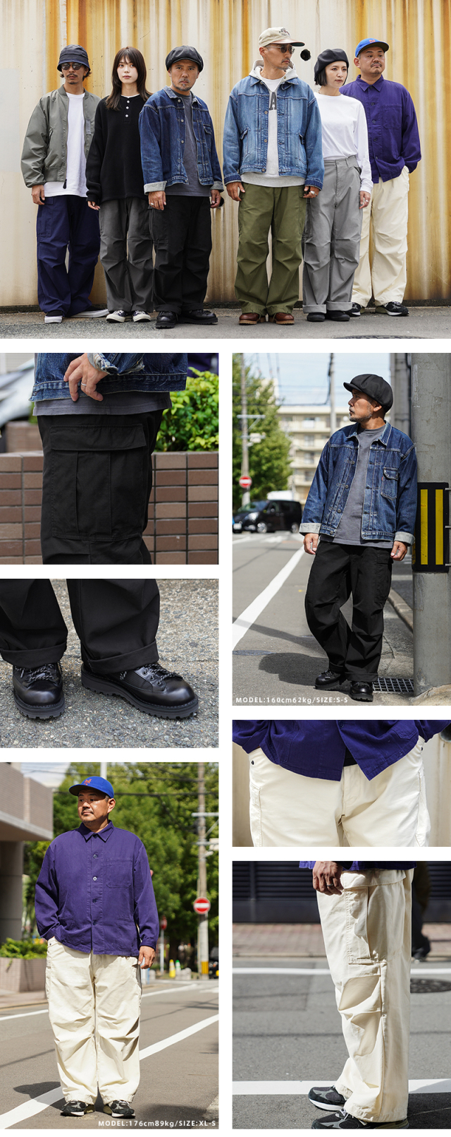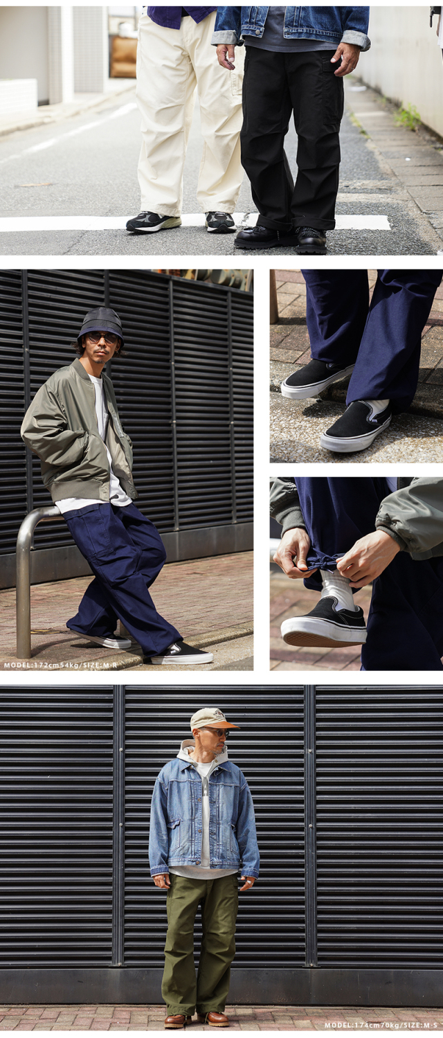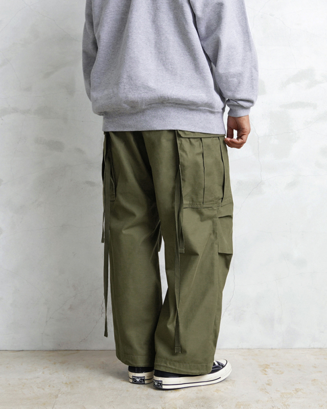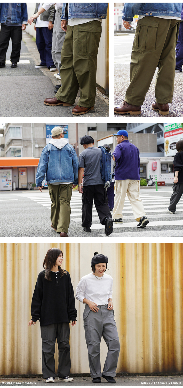 カーゴパンツの代名詞ともいえるデザインは60年代に採用されたアイテムながら、今見てもまったく古臭さを感じさせない名作となります。実物品は現在出回ることもほとんどない昨今、随所にこだわりを持って再現させていただきました。 元々は寒冷地帯での防寒用に作られており、下にもう一枚履けるよう太めのシルエットが特徴的。コットンとナイロンを混紡したサテン生地は実物を見本にオリジナルで製作させていただきました。部材やディテール、ヴィンテージ感のあるアルミのファスナーと、細部まで作り込んだ自信作となっています。
