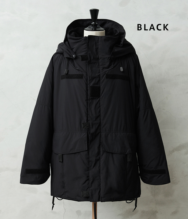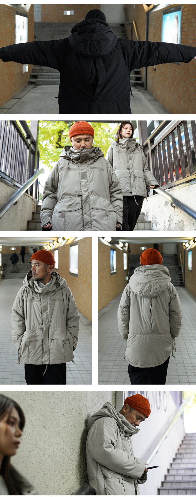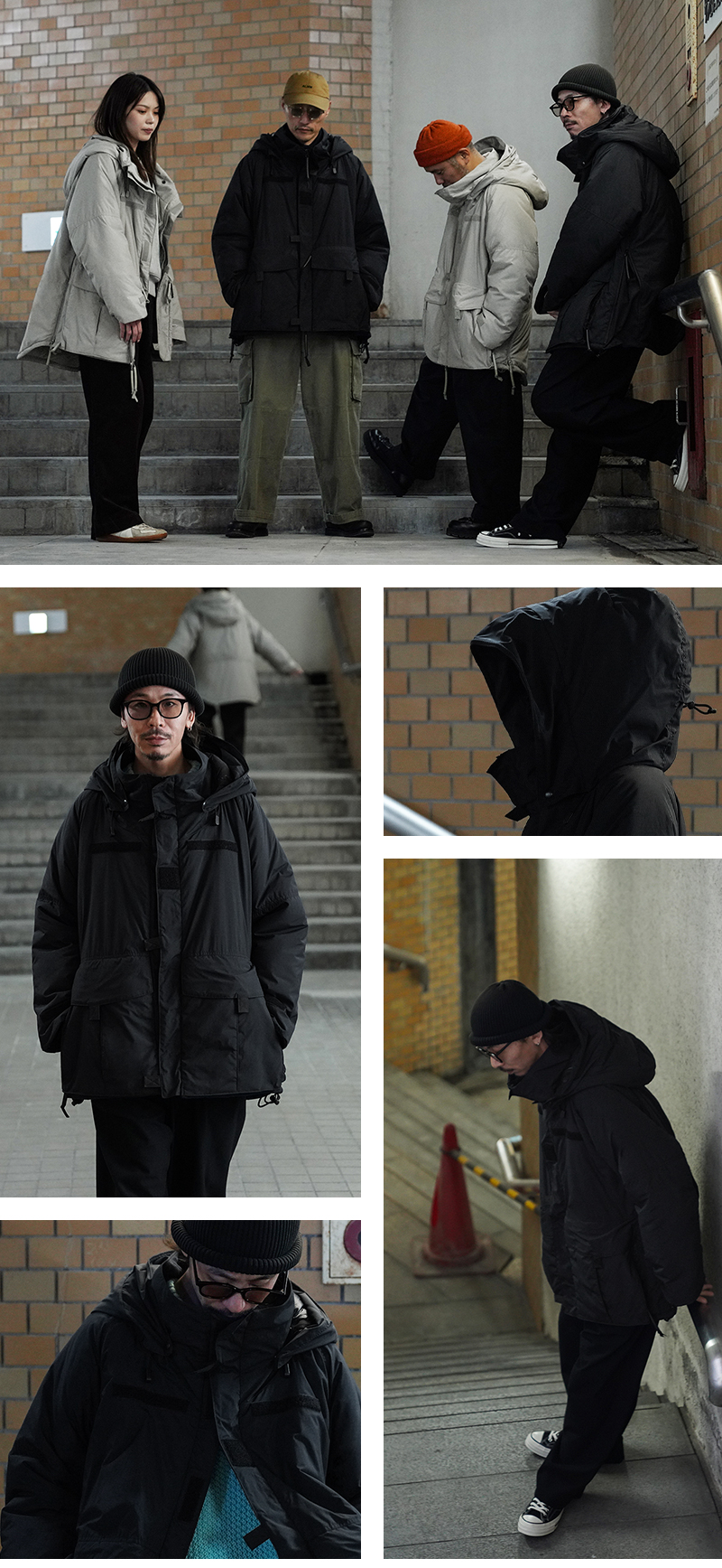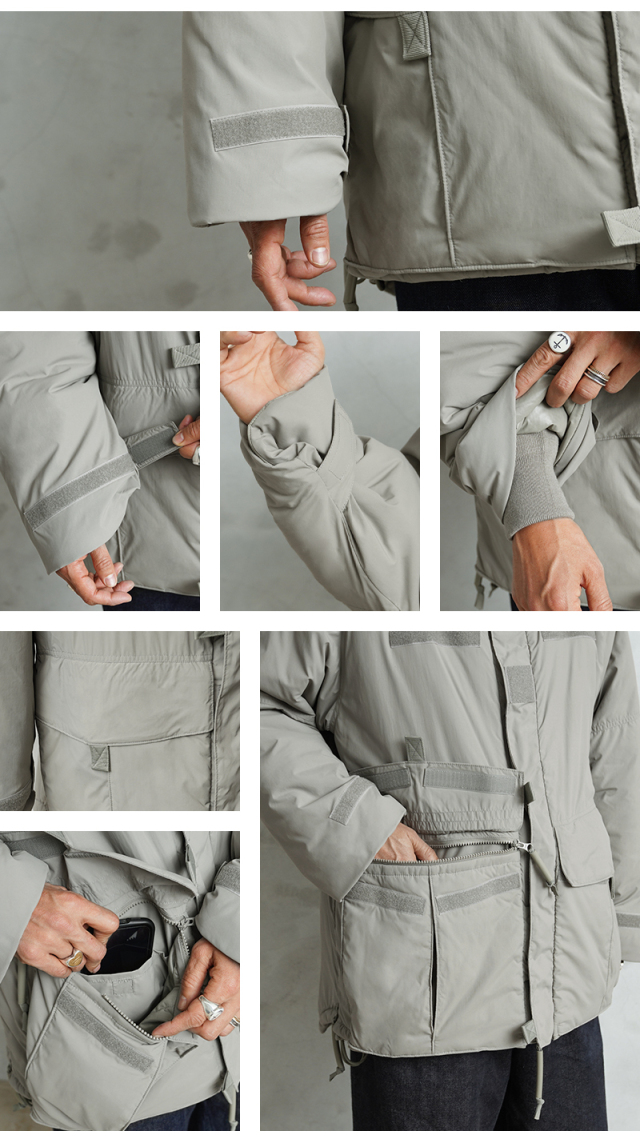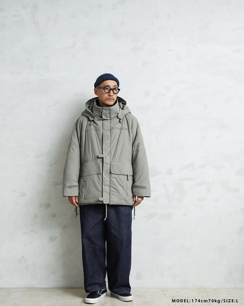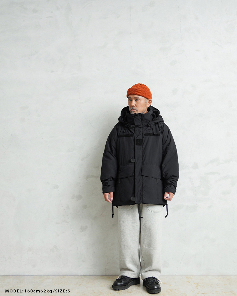 2020年代から現在にかけて、米軍が北極圏での行動を視野に開発を進めている次世代レイヤリングシステム CTAPS(Cold Temperature and Arctic Protection System)。 ECWCSが7段階のレイヤー構造であるのに対し、CTAPSは5段階へとシンプルに再設計されています。 ディテールは実物を徹底的に踏襲しつつ、機能性と唯一無二のインパクトあるデザインを両立。LEVEL7とモンスターパーカーを掛け合わせたようなシルエットは、長めに設定された着丈によって腰回りまでしっかり覆い、防風性・防寒性と都会的な佇まいを両立させています。