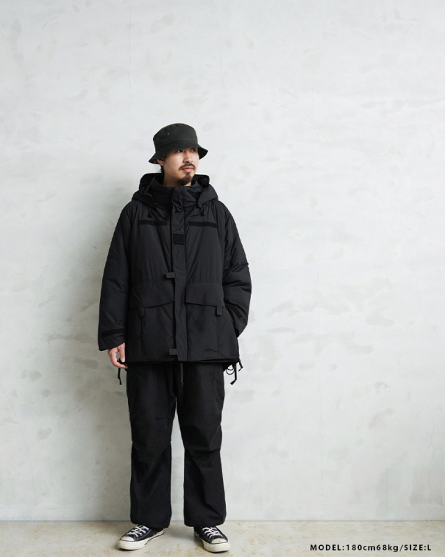 | 商品説明 | WAIPER.inc 米軍 CTAPS PROTOTYPE LAYER5 PRIMALOFT パーカー PERTEX UNLIMITED のご紹介です。 品名:CTAPS Prototype Extreme Cold Weather Parka 品番:WP1126 2020年代から現在にかけて、米軍が北極圏での行動を視野に開発を進めている次世代レイヤリングシステム CTAPS(Cold Temperature and Arctic Protection System)。 ECWCSが7段階のレイヤー構造であるのに対し、CTAPSは5段階へとシンプルに再設計されています。 本製品は、その中でも極寒環境下で最外層として着用されるレイヤー5をモチーフに、WAIPER.incが独自のアレンジを加えて仕上げた一着です。従来のECWCSとは異なるアプローチで構築された最新のヘビーアウターを、日常で着やすいバランスへ再構築したモデルとなっています。 ディテールは実物を徹底的に踏襲しつつ、機能性と唯一無二のインパクトあるデザインを両立。LEVEL7とモンスターパーカーを掛け合わせたようなシルエットは、長めに設定された着丈によって腰回りまでしっかり覆い、防風性・防寒性と都会的な佇まいを両立させています。 実物はマルチカム(OCP)仕様ですが、本製品ではECWCSの文脈に合わせてグレーとブラックの2色展開にアレンジしています。 表地にはイギリスのPERTEX社が展開する PERTEX UNLIMITED(パーテックス・アンリミテッド) を採用。軽量でありながら優れた耐久性と防風性を備え、あらゆるフィールドで実力を発揮する注目ファブリックです。 中綿には高機能インシュレーションとして知られる PRIMALOFT を使用。濡れに強く、天然ダウンに匹敵する保温性を持ち、寒冷地でも信頼できる暖かさを提供します。 脇にはストレッチ生地を用いたベンチレーション、背面には運動量を確保するインバーテッドプリーツなど、ECWCSで求められていた機能を踏まえた放熱性の高い設計が特徴です。 ヘルメットの上からでも被れる大型フードはワイヤー入りで形状調整が可能。さらに、特徴的な貫通式ポケットにより、フロントを開けることなくインナー装備へアクセスできるなど、実用性にも優れています。 WAIPER.incでは、実物アイテムの魅力を大切にしながら、現代的な素材・機能を適切に組み合わせることで、確かな防寒性と快適性、そして取り入れやすいカラーリングを実現しました。 今冬のアウター選びにおいて自信を持っておすすめできる一着です。アウトドアからタウンユースまで、幅広いシーンで確かなパフォーマンスを発揮してくれます。 |