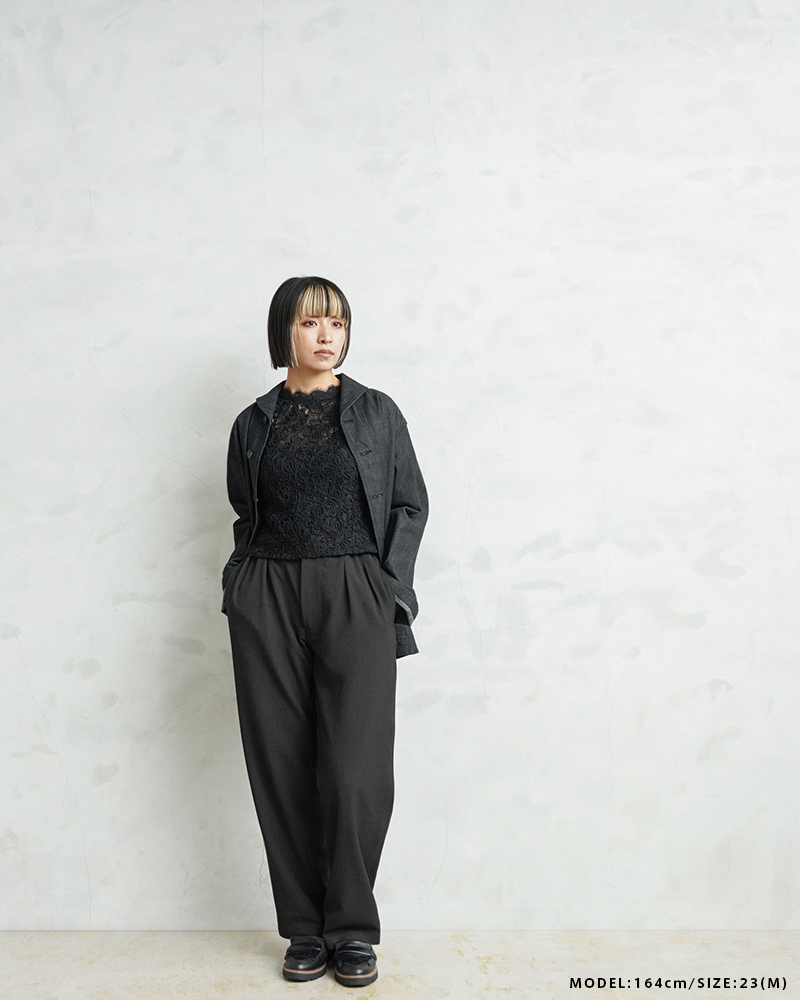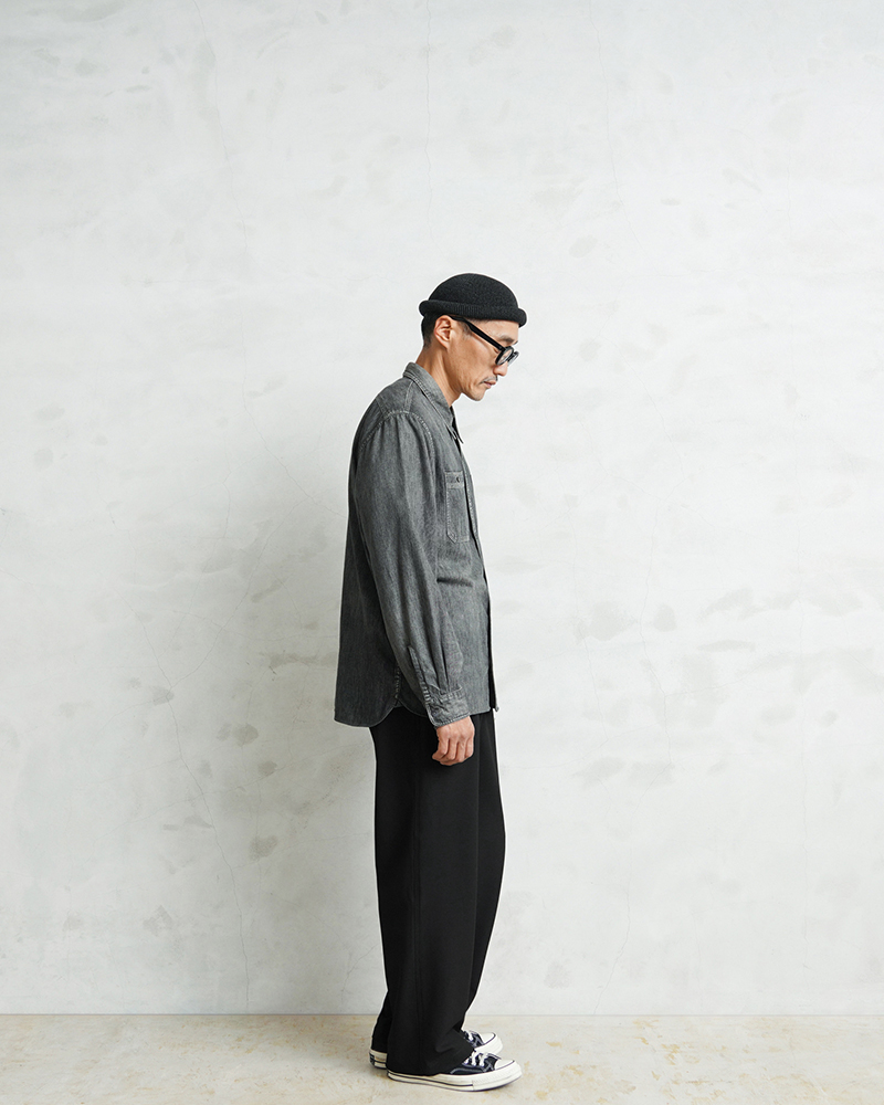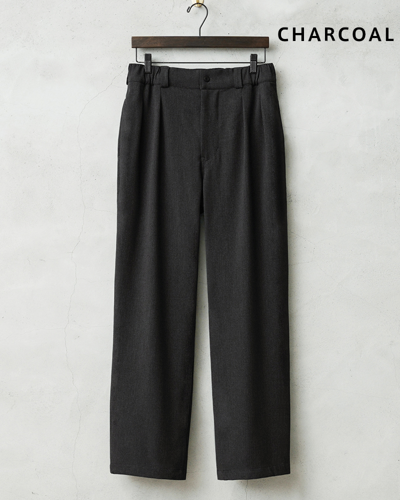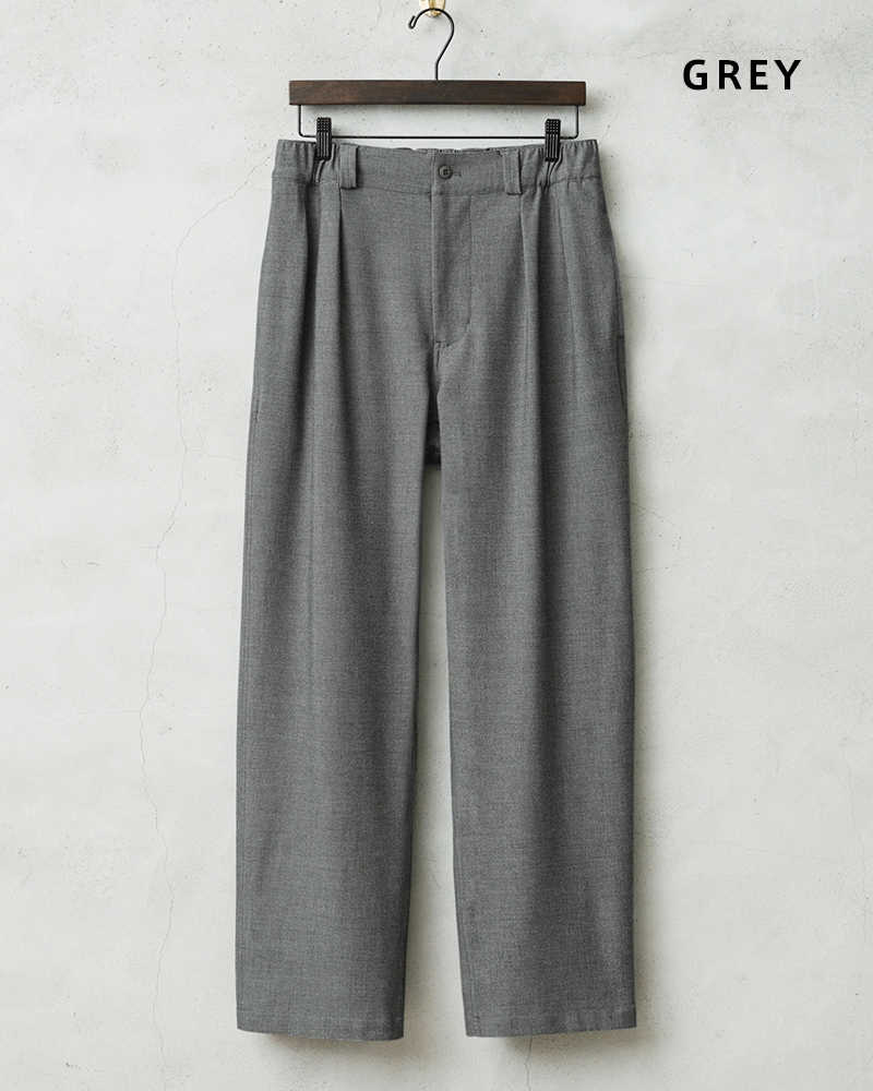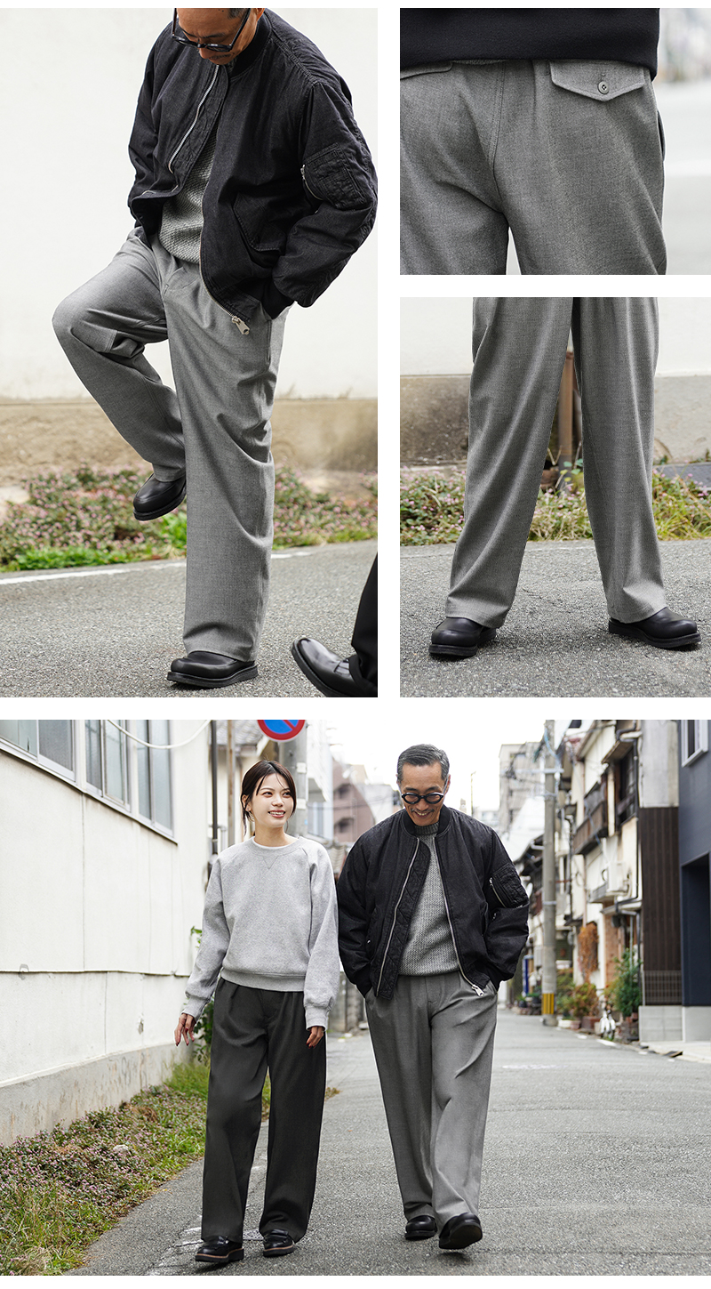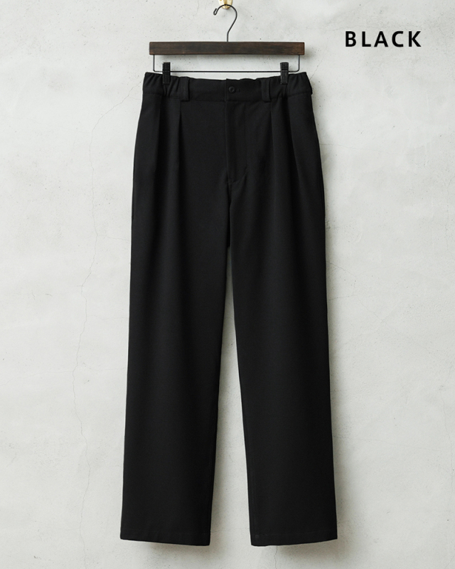 なめらかな肌触りと優れた伸縮性を備えた高機能素材を使用したスラックスを製作しました。 国産テキスタイルメーカーのストレッチファブリックを使用。しわになりにくくお手入れも楽な4WAYストレッチの生地は、縦横に優れた伸縮性を有します。繊維に浸透させたアルガンオイルにより肌当たりもなめらかでシルキーな質感が特徴です。