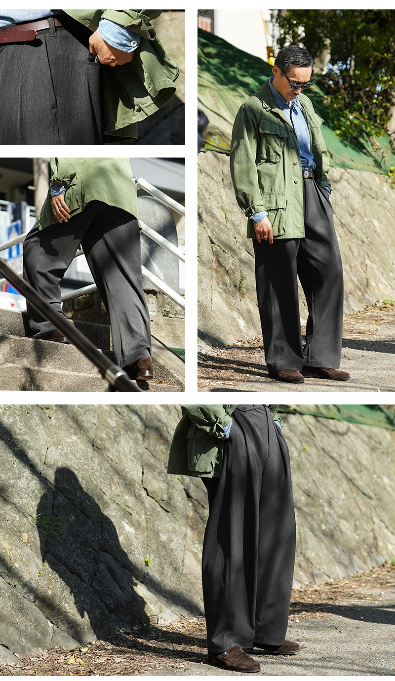 もしも1940年代にWAIPER.incという架空のコントラクターが存在していたなら──。 そんな想像から生まれた、架空の米軍トラウザー。こちらはシルキーな肌触りと、高い伸縮性が生み出す履き心地の良さがたまらないストレッチバージョン。 ベースにしたのは、40年代の米軍チノ。そこに私たち自身が「この部分がこうなっていたら...」と思える理想のディテールを盛り込み、“トラウザーの完成形”と呼べる一本に仕上げました。